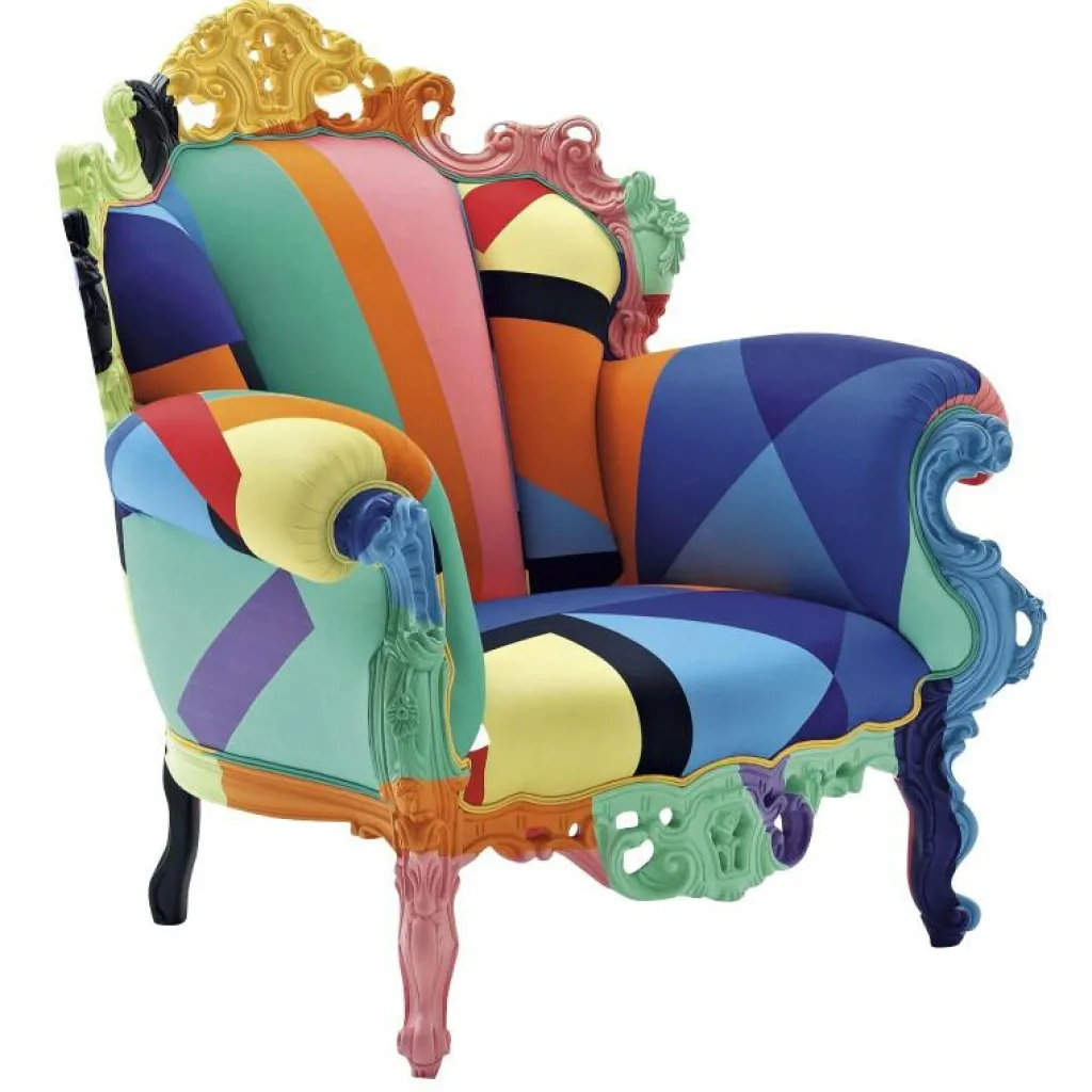 Der Proust Geometrica Mendini Sessel wurde von Alessandro Mendini für die Marke Cappellini entworfen. Dabei handelt es sich um eine moderne Neuinterpretation eines Throns, wie er schon vor vielen Jahrhunderten in Schlössern und Burgen zu finden war. Der avantgardistische Stuhl bereichert Lobbys von Boutiquehotels oder modern eingerichtete Wohnzimmer.