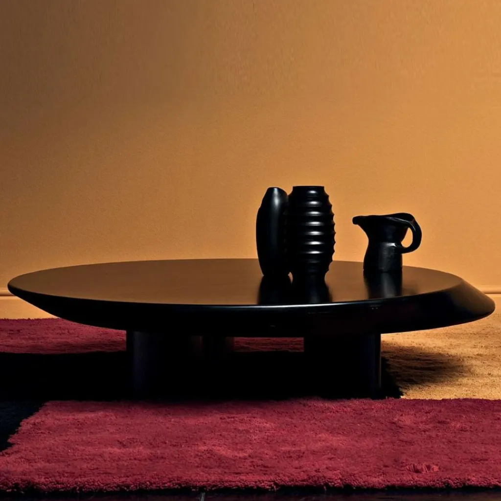 Ein Statement in Schwarz – der 520 Accordo Couchtisch von Cassina. Charlotte Perriand entwarf das Möbelstück im Jahr 1985, das ebenso kraftvoll wie poetisch ist.