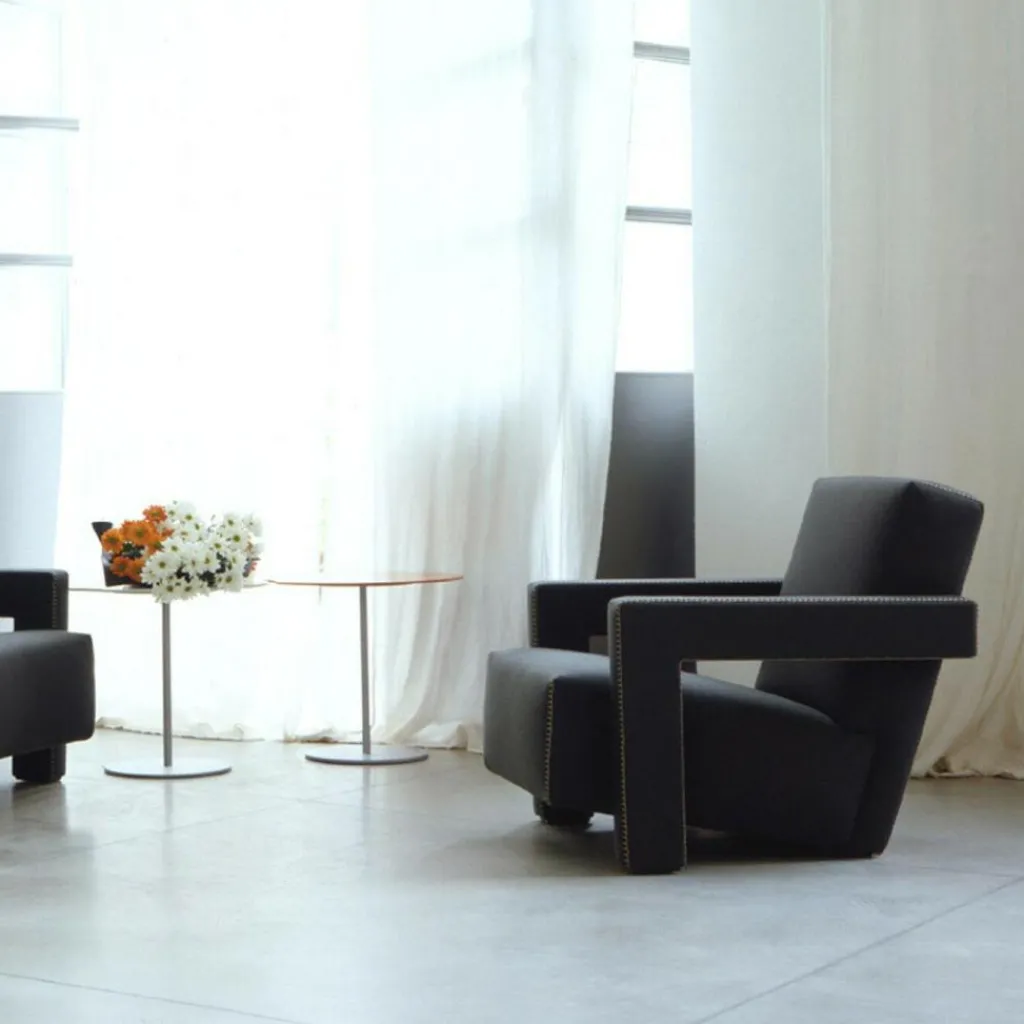 Der Cassina 637 Utrecht Ledersessel wurde von Gerrit Rietveld für die Marke Cassina entworfen. Das extravagante Möbelstück blickt auf eine lange Geschichte zurück: Es wurde im Jahr 1935 für das renommierte Kaufhaus Metz & Co in Amsterdam hergestellt. Der Name bezieht sich auf die niederländische Heimatstadt des Designers.