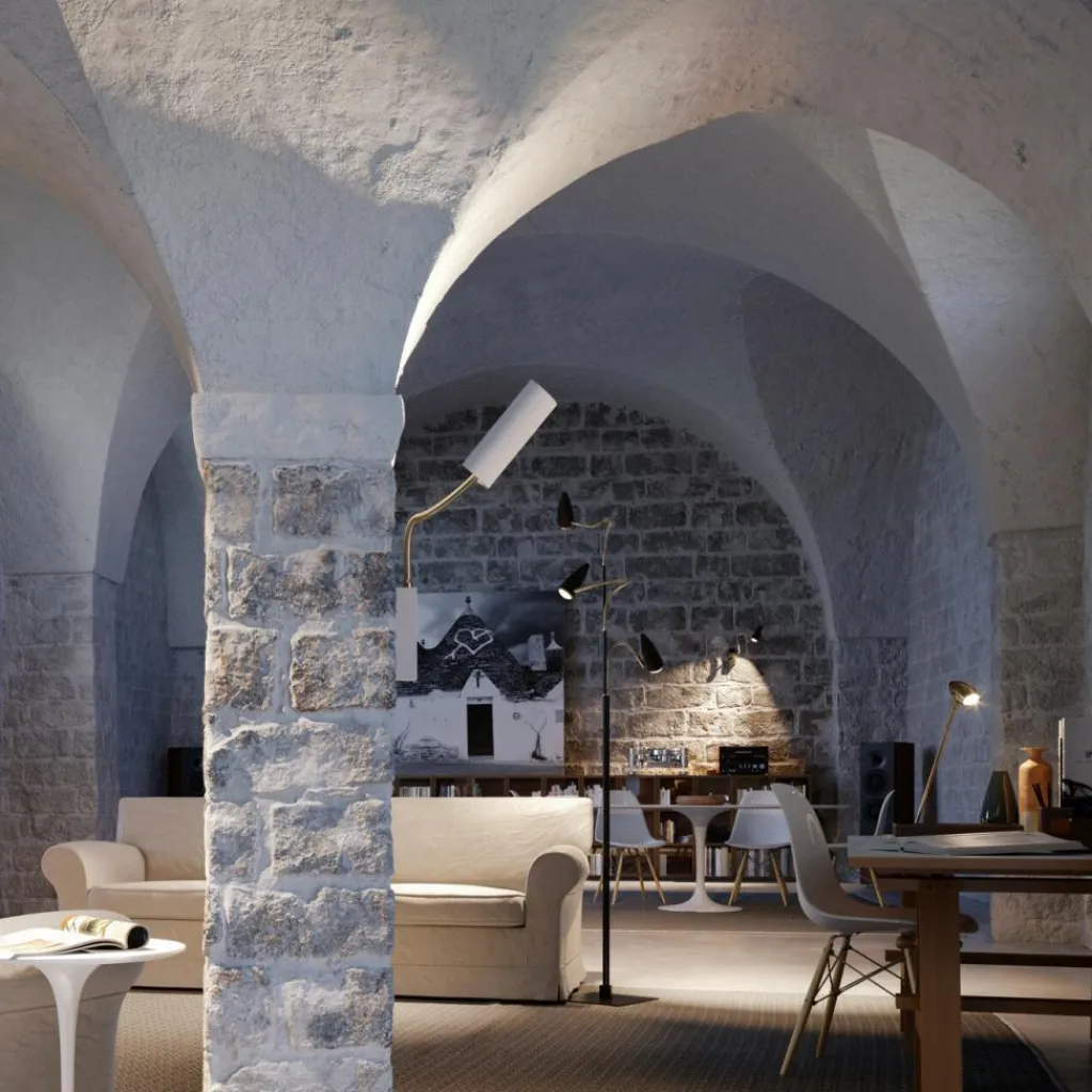 Die CicloItalia Flex F3 Stehleuchte ist, auch wenn sie nicht eingeschaltet ist, ein Kunstobjekt. Zum Hingucker werden die drei Leuchtschirme mit eine Linse aus Glas, die an flexiblen Messingarmen montiert sind. Somit lassen sich die Strahler in jede beliebige Richtung lenken. Die CicloItalia Flex F3 Stehleuchte ist noch dazu mit drehbaren Gelenken zwischen den Armen und dem Leuchtkörper ausgestattet und in der Höhe verstellbar. Der punktuelle Lichtstrahl lässt sich daher nach den persönlichen Vorlieben lenken. Gerne findet die innovative Leuchte im Wohnzimmer Verwendung, wo sie beim Lesen, Fernsehen oder im Gespräch mit Freunden oder der Familie stimmungsvolle Atmosphäre schafft.