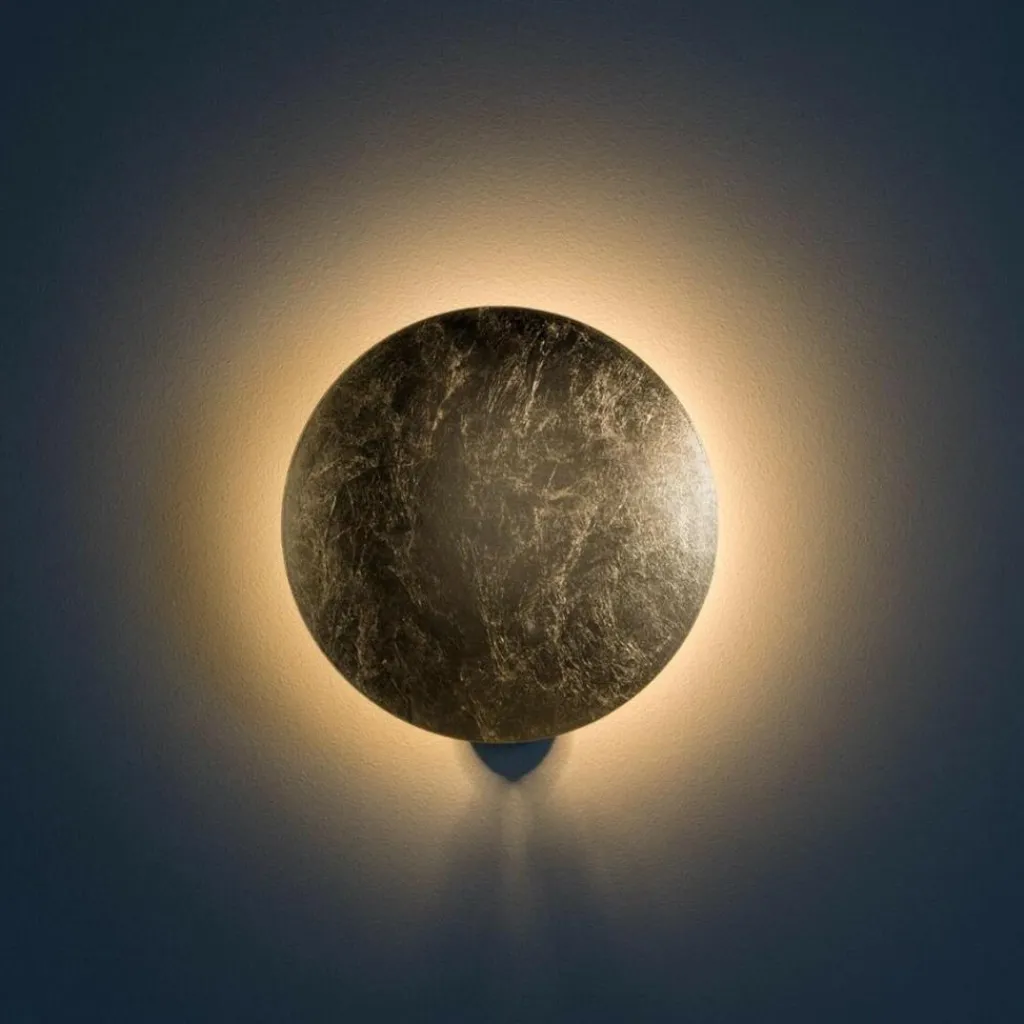 Die Lederam W1 Wandleuchte besteht aus einer Scheibe aus Aluminium und Nickel. Sie hat einen Durchmesser von 17 cm. Die LED-Module sind auf der Innenseite der Scheibe angebracht, so dass die Wand indirekt angestrahlt wird. Die Scheibe, die es in Schwarz, Kupfer und Weiß gibt, ist durch ein bewegliches Scharnier mit dem an der Wand befestigten schwarzen Gestell verbunden. So kann der Winkel zur Wand beliebig verändert werden. Je nach Einstellung wirft die Scheibe einen hellen Kreis auf die Wand, was ein schönes warmes Licht ergibt. Die Lederam W1 Wandleuchte hat eine Tiefe von 8 cm und passt daher in jedes Treppenhaus.
