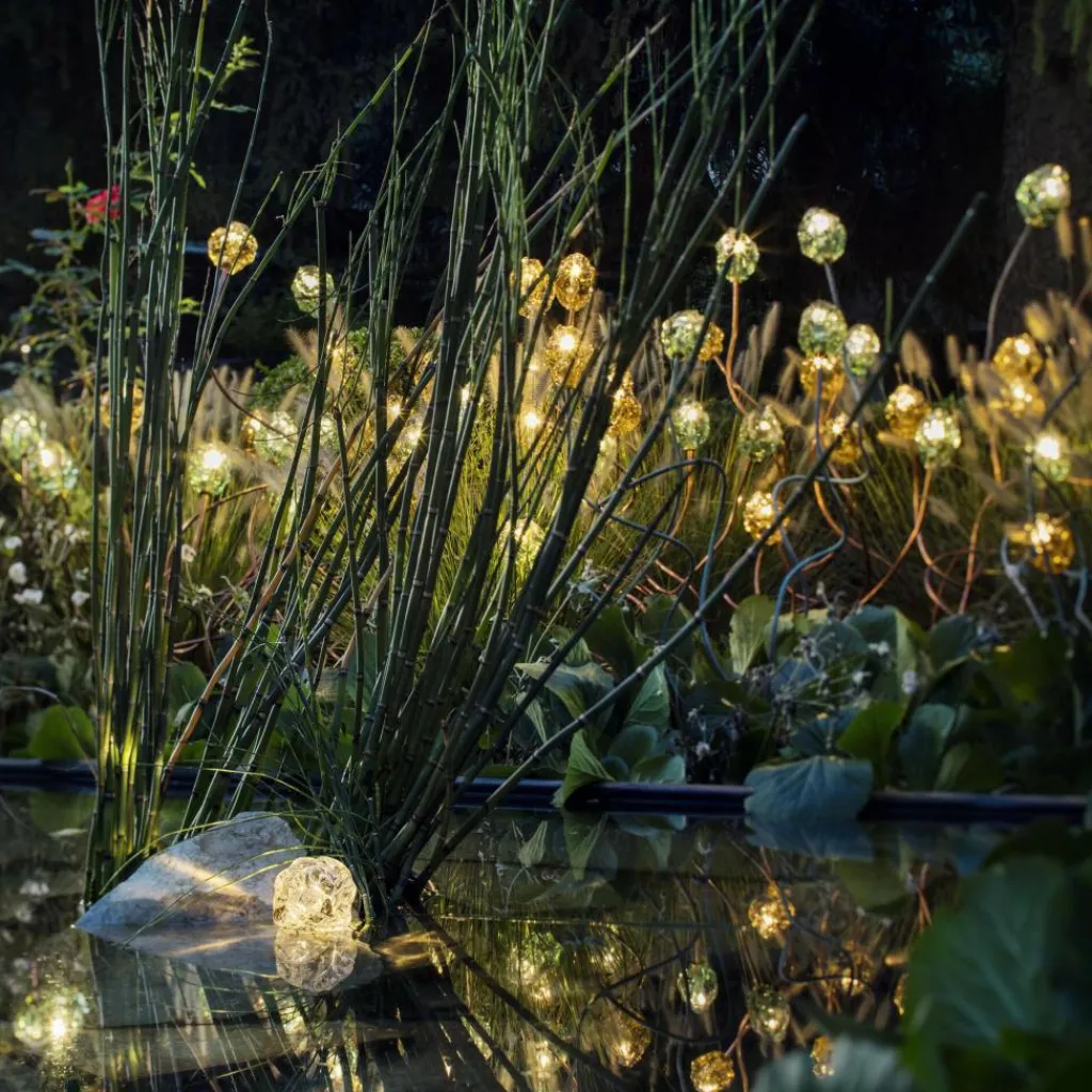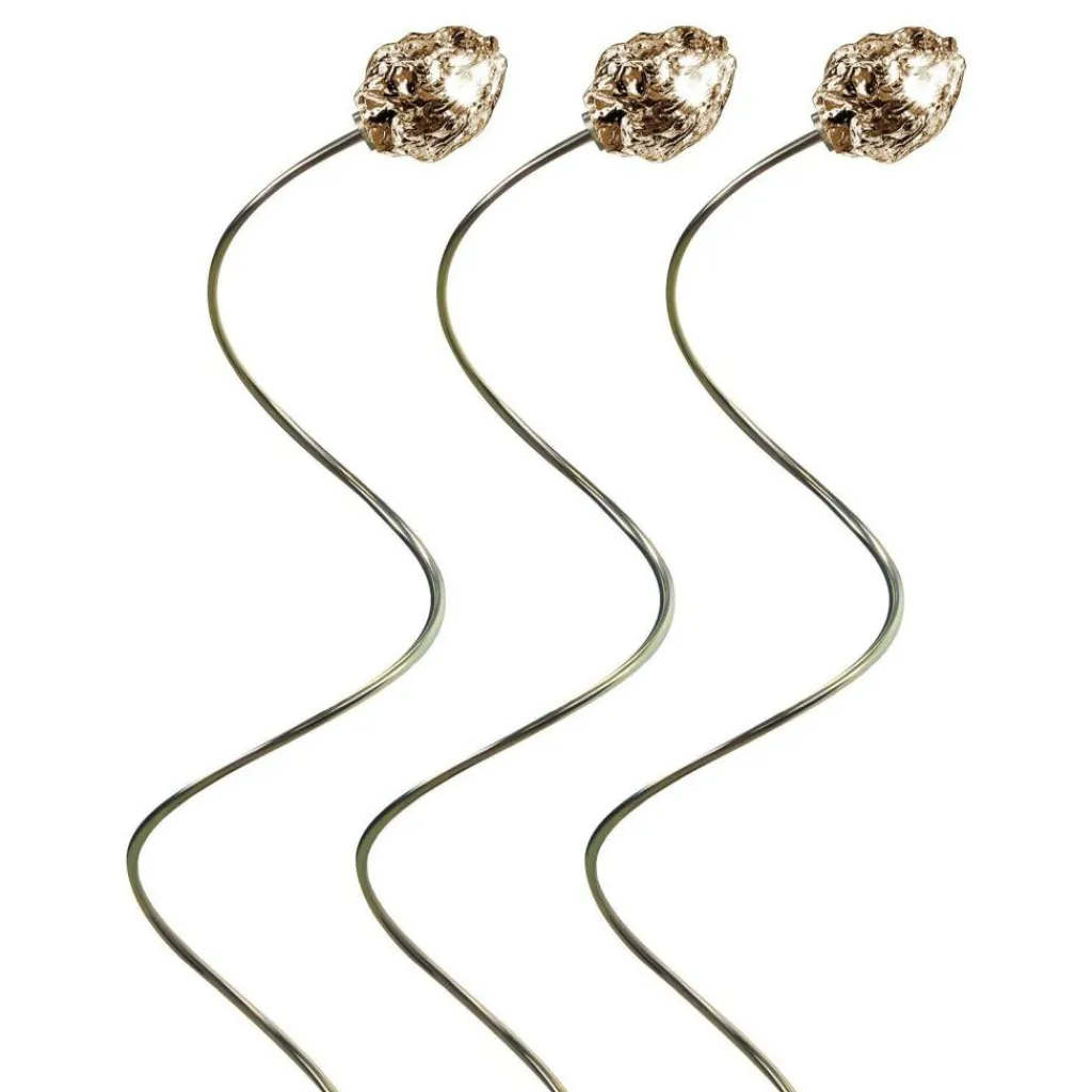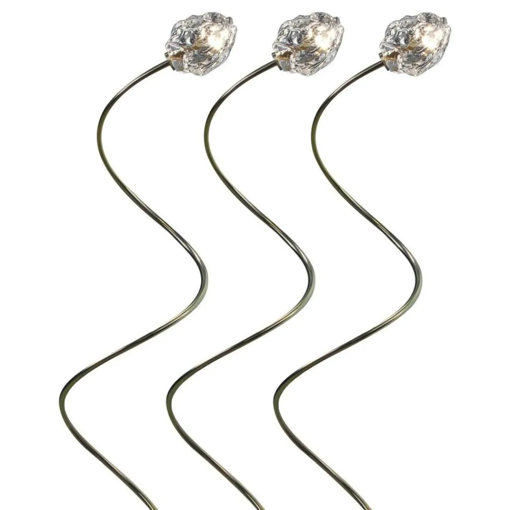 Mit ihrem gewundenen Erdspieß sieht die Leuchte aus wie eine Pflanze, die aus der Erde ragt. An der Oberkante ist ein Glaskörper befestigt, der mit seinem aufwendigen Schliff an eine Blüte erinnert. Der Leuchtenschirm entsteht in liebevoller Handarbeit und die unebene Oberfläche macht das More F Außenstehleuchte H 130cm 3er Set unverwechselbar. Kaum wird die Leuchte eingeschaltet, fühlt man sich auch in den Abendstunden in der Grünoase genauso wohl wie im Wohnzimmer. Das More F Außenstehleuchte H 130cm 3er Set lässt sich perfekt mit dem kleineren Modell im selben Design kombinieren. So entsteht auf Wunsch ein Lichtermeer, das an funkelnde Diamanten erinnert.
