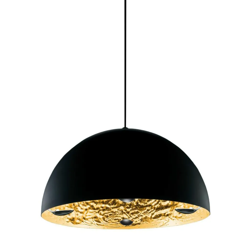 Die Stchu-Moon 02 Pendelleuchte Ø80cm begeistert mit einer halbrunden Form, hinter deren Einfachheit sich ein experimenteller Charakter verbirgt. Die metallische Pendelleuchte besitzt eine von außen schwarze, absolut matte Oberfläche, deren Innenseite ein glanzvolles, metallisches Finish zeigt. Letzteres reflektiert das aus den vier LED-Pins austretende Licht, sodass Ihr Wohn- oder Schlafzimmer indirekt und blendfrei erhellt wird. Die dimmbare Stchu-Moon 02 Pendelleuchte Ø80cm besitzt eine ungleichmäßige Struktur, die immer einzigartig ist. Das Leuchtmittel bleibt in jedem Fall verborgen im Hintergrund. Die Atmosphäre wird entscheidend durch das metallische Finish geprägt, sodass sowohl warme Töne als auch spacige Ansätze verwirklicht werden können. Praktisch ist, dass das 170cm lange Kabel auch zugeschnitten werden kann. Die vier Leuchtmittel mit GY6.35-Fassung sind im Lieferumfang enthalten und austauschbar.