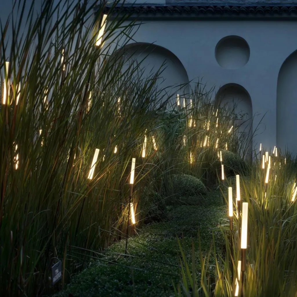 Wie leuchtend weißes Schilfgras verzaubert die Syphasera Außenstehleuchte Ihren Garten. Insbesondere dann, wenn Sie mehrere davon gleichzeitig zum Strahlen bringen. Verbinden Sie die Leuchtkörper mit einem 12-Volt-Transformator und verschaffen Sie sich unendliche Möglichkeiten, diese Lichtobjekte in Ihrem Garten zu verteilen. Doch auch Ihre Terrasse oder der Balkon werden von den Leuchten von Catellani & Smith in strahlendes Licht gehüllt.