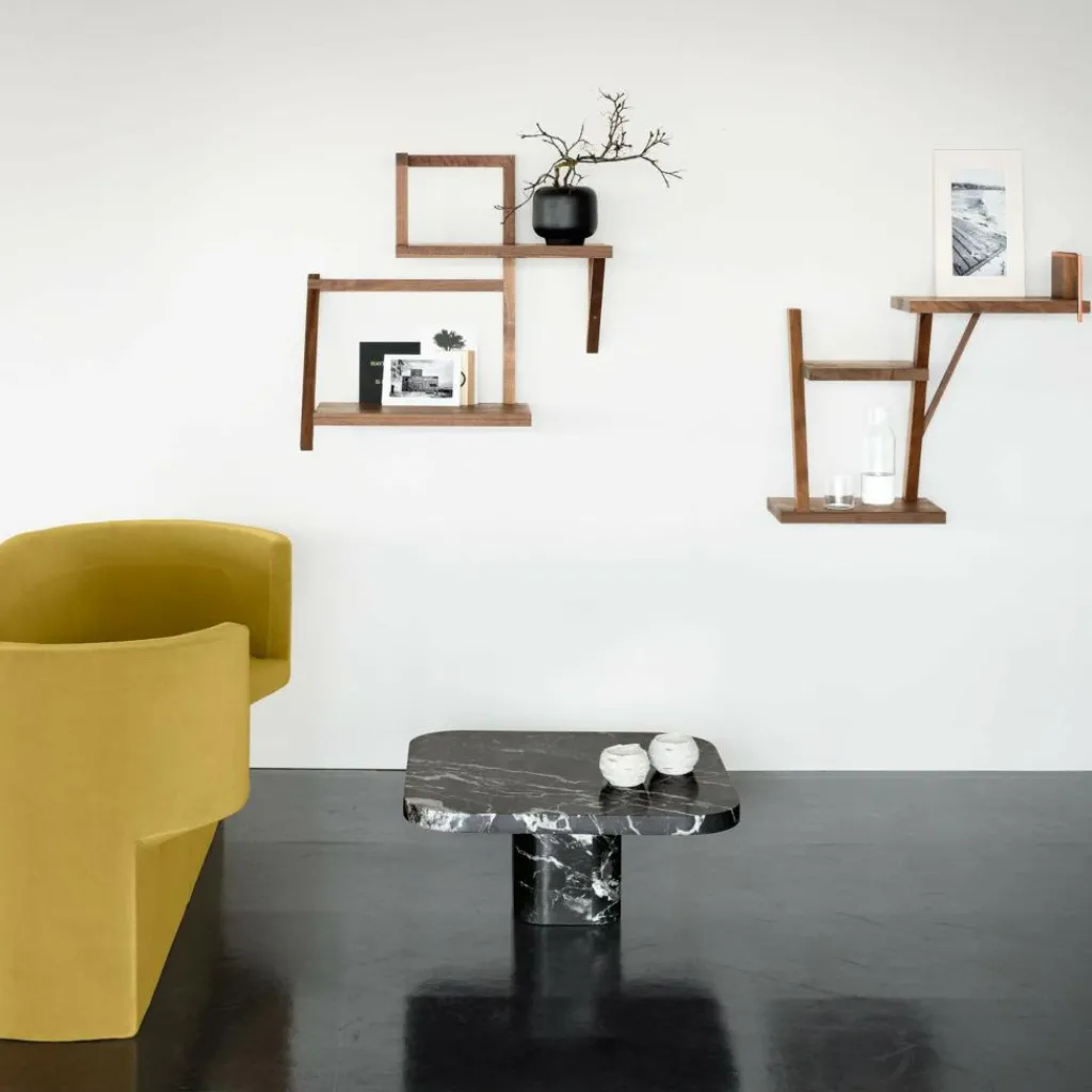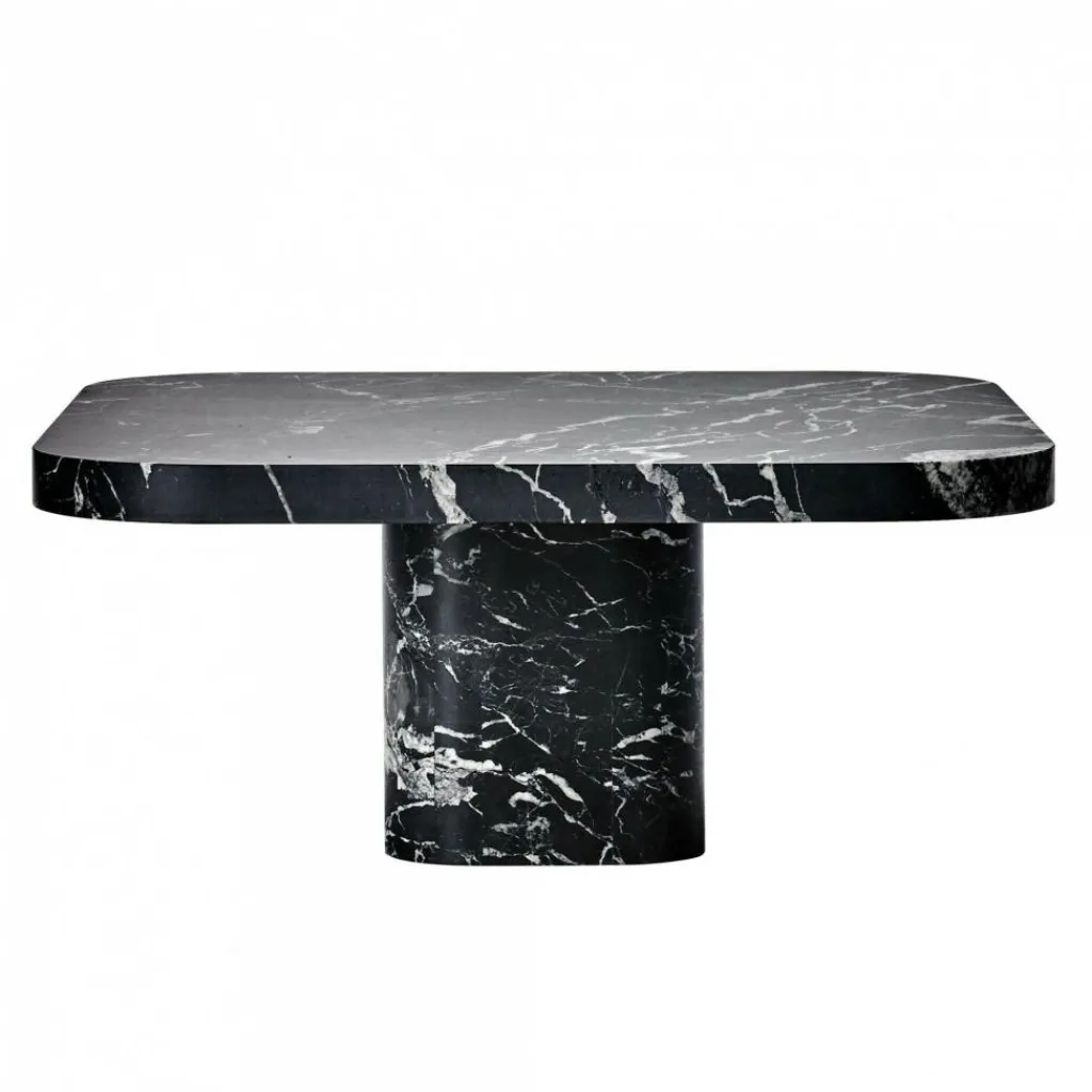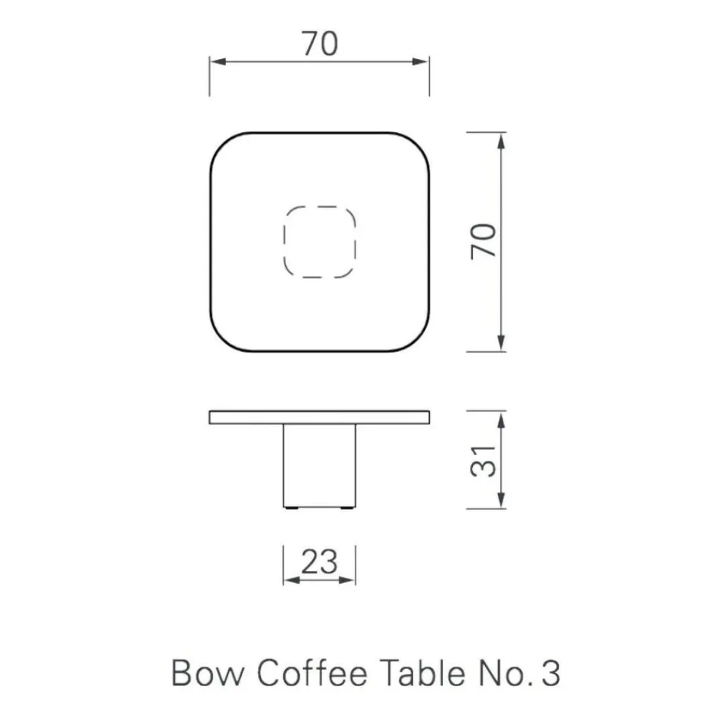 Der Bow No. 3 Couchtisch Marmor begeistert mit seiner lässigen Eleganz. Die Oberfläche zitiert futuristische Entwürfe und wirkt aufgrund ihrer Materialbeschaffenheit dennoch klassisch. Daher fügt sich dieser Couchtisch in unterschiedlich gestaltete Interieurs perfekt ein. Die Ecken der Tischplatte aus Marmor sind abgerundet, sie misst 70 x 70 cm und schwebt auf einem 23 x 23 cm großen Sockel. Die Gesamthöhe liegt bei 31 cm.