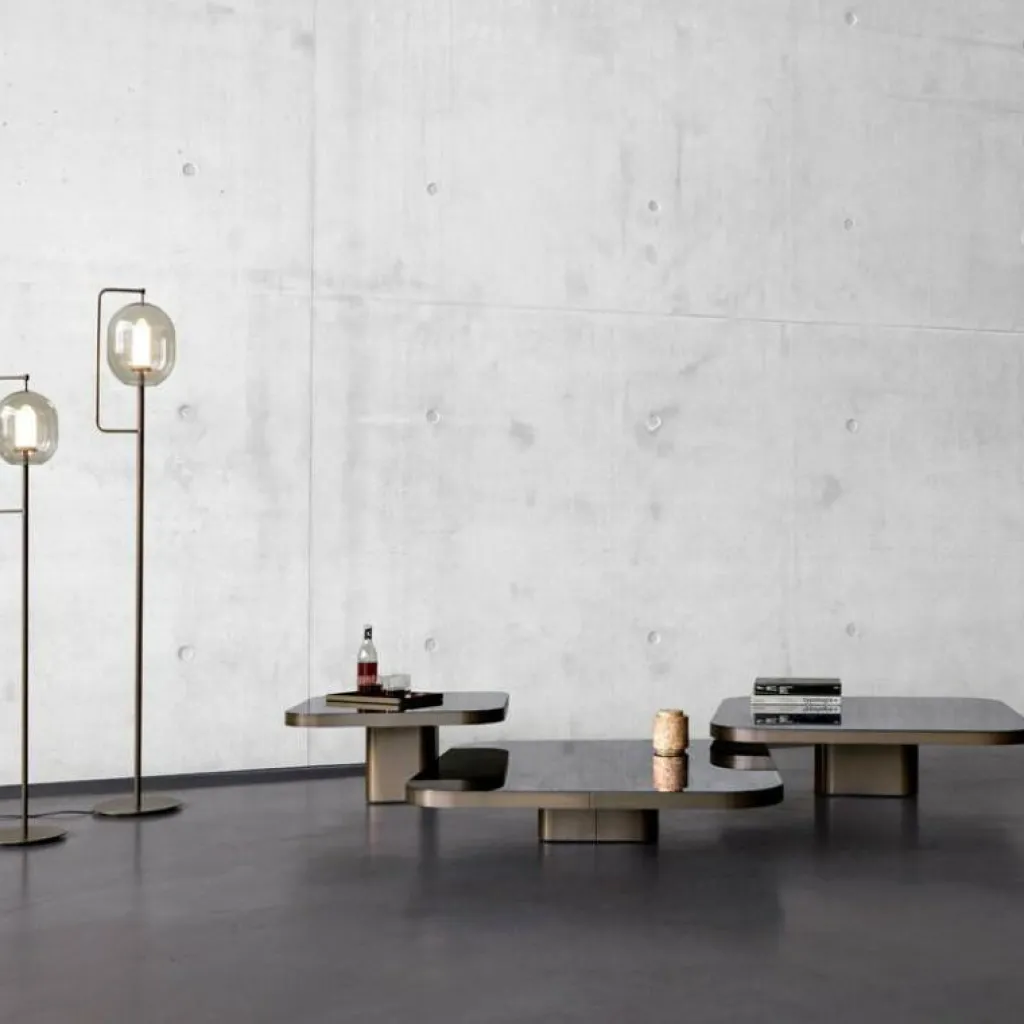 Entworfen von Guilherme Torres, ist der Bow No. 4 Couchtisch 100x100x19cm Teil einer Serie, die sich an den fließenden Linien und der gestalterischen Leichtigkeit der 1970er-Jahre orientiert. Die quadratische Tischplatte im Format 100 x 100 cm ruht scheinbar schwebend auf einem sorgfältig gearbeiteten Sockel mit weich abgerundeten Ecken – eine Konstruktion, die klassische Eleganz mit zeitgenössischer Raffinesse verbindet. Die Kombination aus metallveredeltem Korpus und einer Kristallglasplatte bringt Materialität und Struktur in Einklang. Durch die niedrige Höhe von nur 19 cm eignet sich der Tisch besonders für großzügige Lounge-Situationen. Die Bow Serie von ClassiCon umfasst fünf verschiedene Größen, deren abgestufte Höhen ein neben- und übereinander arrangieren ermöglichen. So lassen sich bei Bedarf mehrere Tische zu einer skulpturalen Komposition mit erweiterten Ablageflächen zusammenstellen. Dank höhenverstellbarer Filzgleiter steht der 42 kg schwere Tisch stabil und bodenschonend. Er ist bis zu 15 kg belastbar und wird vollständig montiert geliefert – bereit, sofort seinen Platz im Raum einzunehmen. Für die Pflege genügt ein trockenes, weiches Tuch. Bei stärkeren Verschmutzungen kann dieses leicht angefeuchtet werden, anschließend sollte die Fläche getrocknet werden. Die Glasplatte lässt sich mit handelsüblichem Glasreiniger reinigen. Flüssigkeiten oder Flecken sollten möglichst rasch entfernt werden, um das hochwertige Finish dauerhaft zu bewahren.