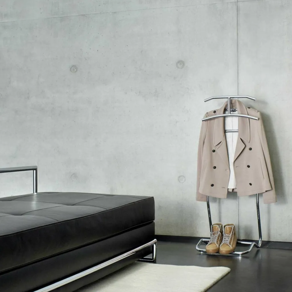 Früher in jedem Herrenzimmer zu finden, feiert der Stumme Diener ein Comeback. Der Mandu Stummer Diener von ClassiCon bietet ausreichend Platz für ein Jackett sowie einen kompletten Anzug und Hemd und sorgt dafür, dass die Passform der Kleidung erhalten und der Anzug knitterfrei bleibt. Das zeitlose Design des Mandu Kleiderständers erlaubt es, den Stummen Diener mit allen Einrichtungsstilen zu kombinieren.
