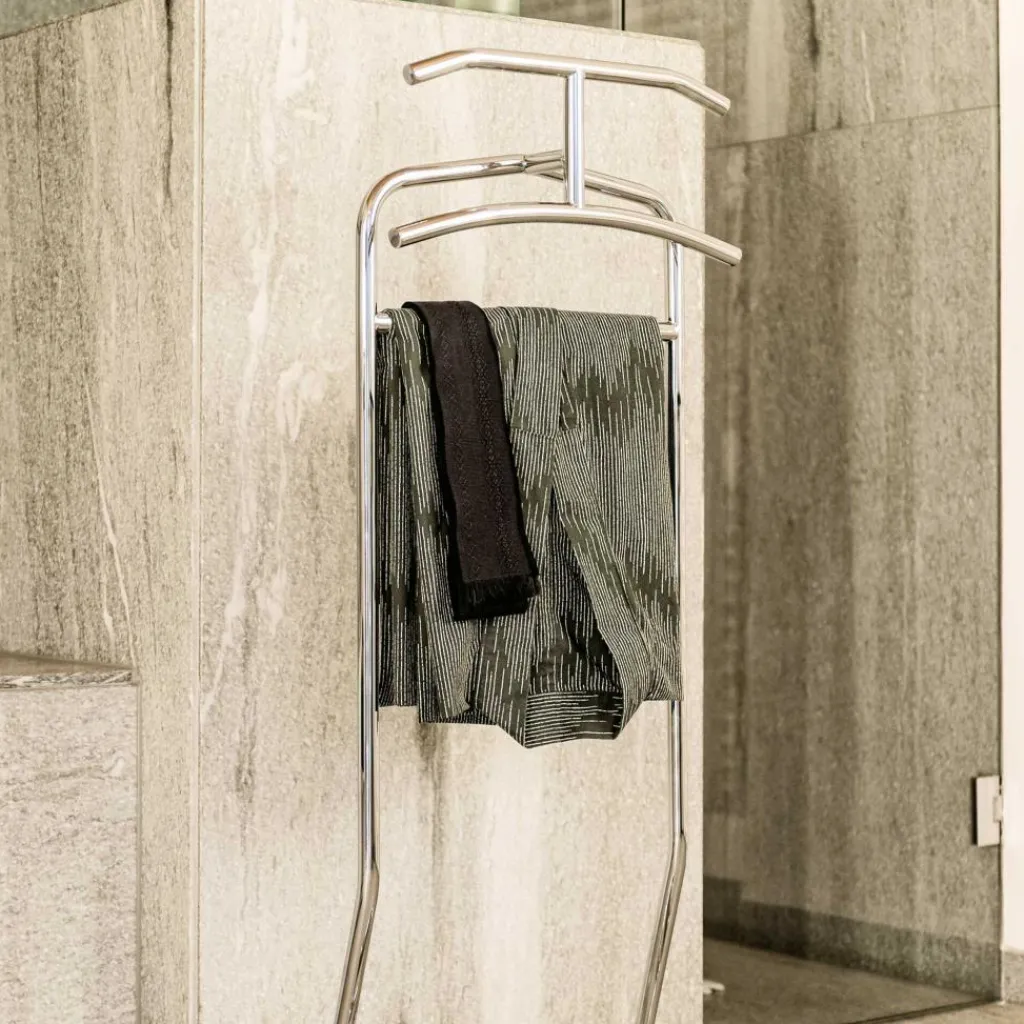 Der Mandu Stummer Diener von ClassiCon ist aus verchromtem Stahlrohr gefertigt. Mit einer Tiefe von 38 cm kann Mandu Platz sparend verstaut werden und bietet auch im Schlaf- oder Gästezimmer eine tolle Aufbewahrungsmöglichkeit für abgelegte Kleidung.