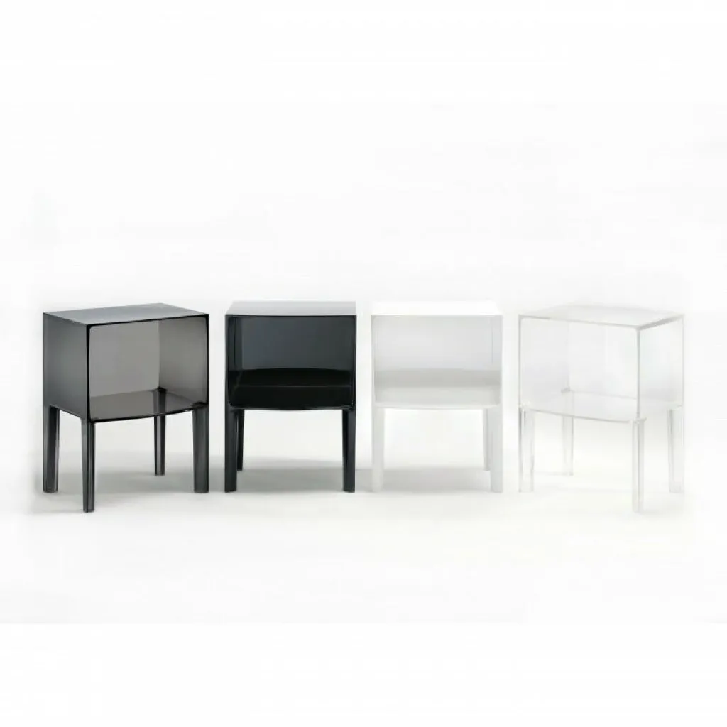 Der Small Ghost Buster Nachttisch wurde von Philippe Starck und Eugeni Quitllet für die Marke Kartell entworfen. Er gehört einer außergewöhnlichen Kollektion an, die mit ihrem durchsichtigen Material auffällt. So wirken auf dem Small Ghost Buster Nachttisch abgelegte Dinge, als würden sie geisterhaft schweben.