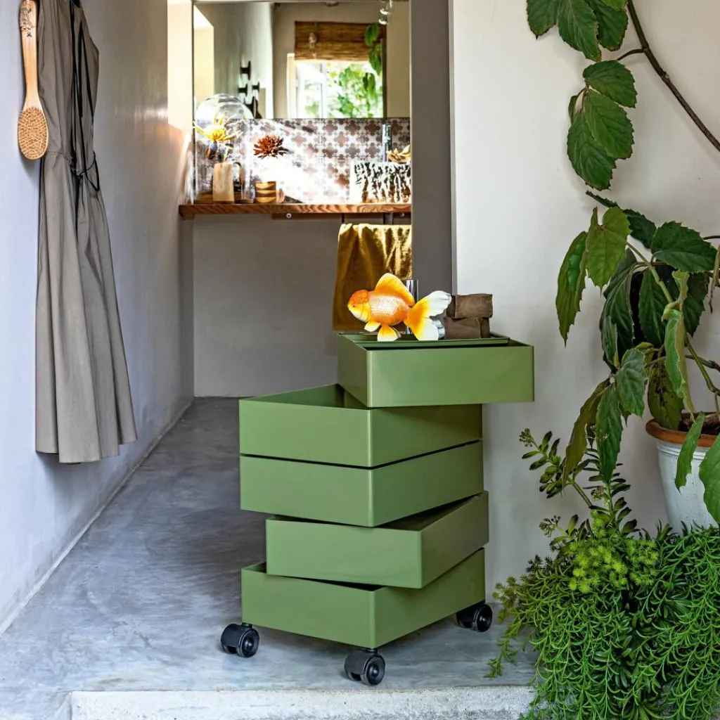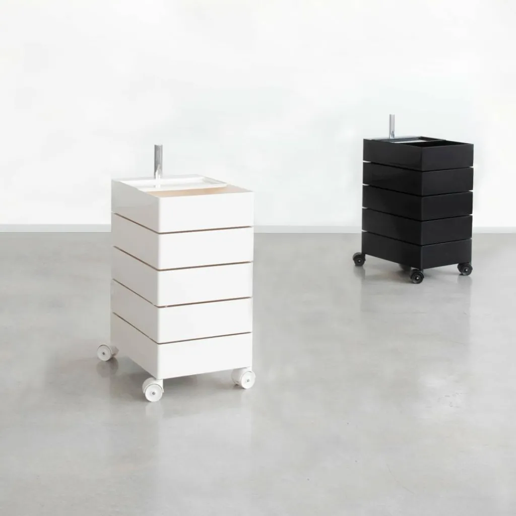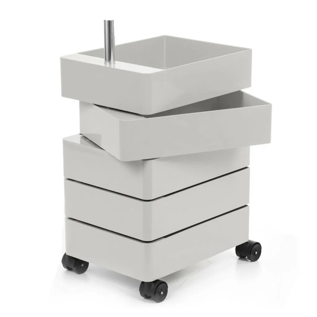 Der 360° Container mit Rollen H 72cm wurde von Konstantin Grcic für die Marke Magis entworfen. Er gehört zu einer Kollektion von Aufbewahrungsmöbeln, die mit ihrer Funktionalität beeindrucken. So sind die Schubladen um 360° drehbar, während der Container selbst dank praktischer Rollen vollkommen beweglich ist.
