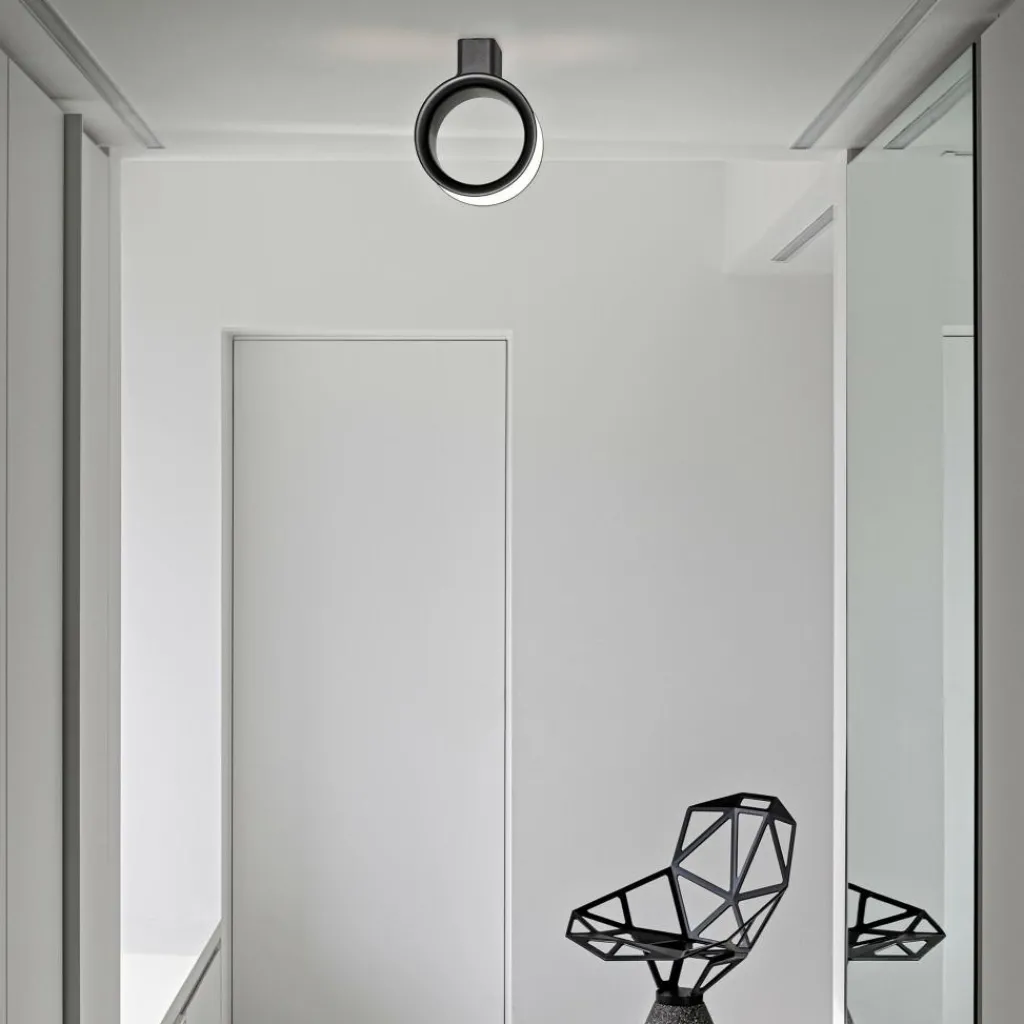 Ihre markante Ringform zeichnet den skulpturalen sowie poetischen Charakter der Lost LED Wandleuchte/Deckenleuchte aus. Damit wird sie schon im ausgeschalteten Zustand zum Hingucker. Eingeschaltet erzeugt sie ein neutrales, warmweißes Licht, das sich homogen über den gesamten Kreisumfang verteilt. Der Leuchtenkörper besteht aus lackiertem ABS. Ihr Diffusor ist aus einem innovativen PMMA-Kunststoff entwickelt, um störende Schatten und Blendung zu vermeiden. Die extravagante Designleuchte lässt sich stufenlos dimmen. Sie passt ebenso in den Verkaufsraum, in ein Designhotel oder ins Büro wie ins moderne Zuhause.