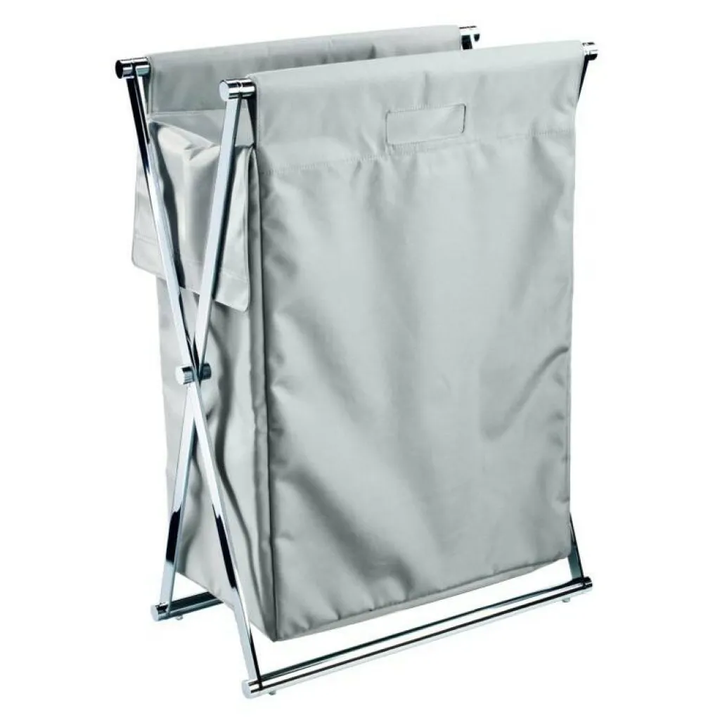 Auch der CROSS WB Wäschebehälter zeichnet sich durch eine perfekte Verarbeitung aus, und die Verwendung hochwertiger Materialien macht ihn zu einem langlebigen Begleiter für Ihr Bad oder das Schlafzimmer. Das Gestell besteht aus glänzendem Chrom, und der Beutel wurde aus grauem Nylon hergestellt. Er ist abnehmbar und lässt sich bei maximal 30 Grad ganz einfach in der Waschmaschine reinigen. Der Wäschebehälter hat eine Breite von 58,5 cm, er ist 82 cm hoch und hat eine Tiefe von 32 cm. Das Produkt ist zusammenklappbar.