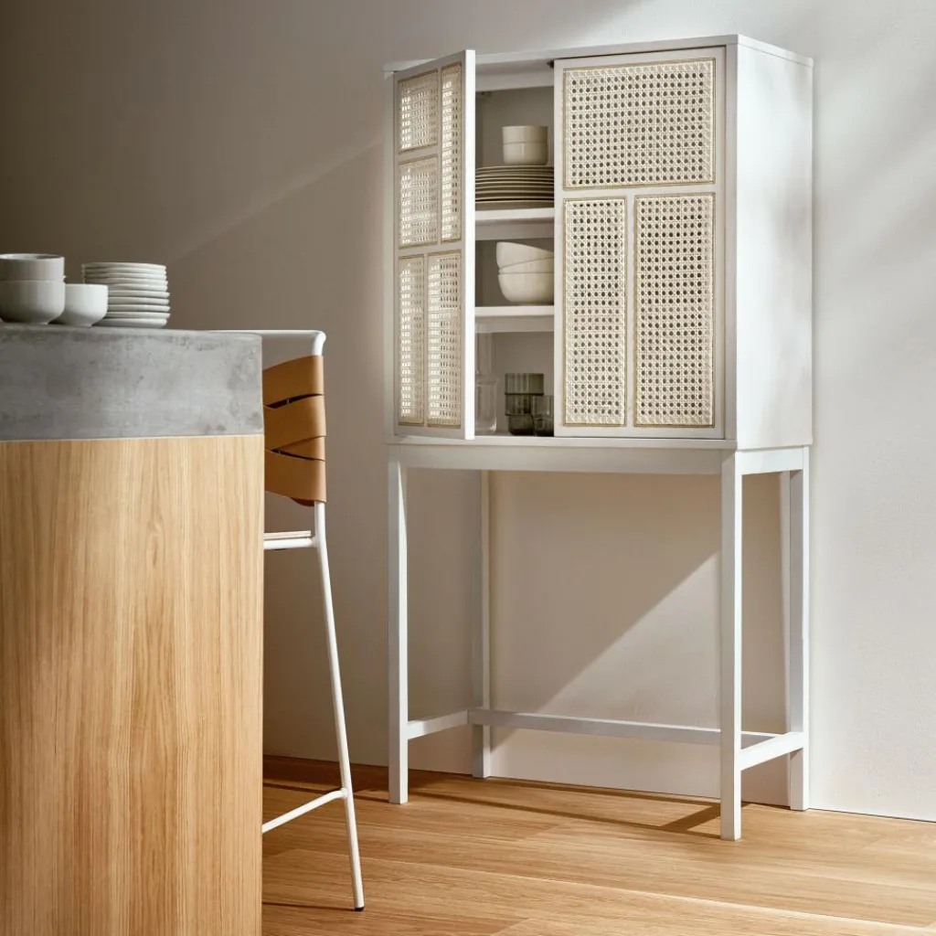 Der Air Schrank wurde von Mathieu Gustafsson für die Marke Design House Stockholm entworfen. Erinnerungen an seine Kindheit inspirierten Gustafsson: Er lebte teilweise in Frankreich, wo er aus Cafés in Paris bequeme Rattanmöbel kannte und in Schweden, wo seit den 1950er Jahren die Rattantasche Palmgren für Furore sorgte.