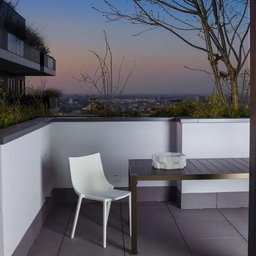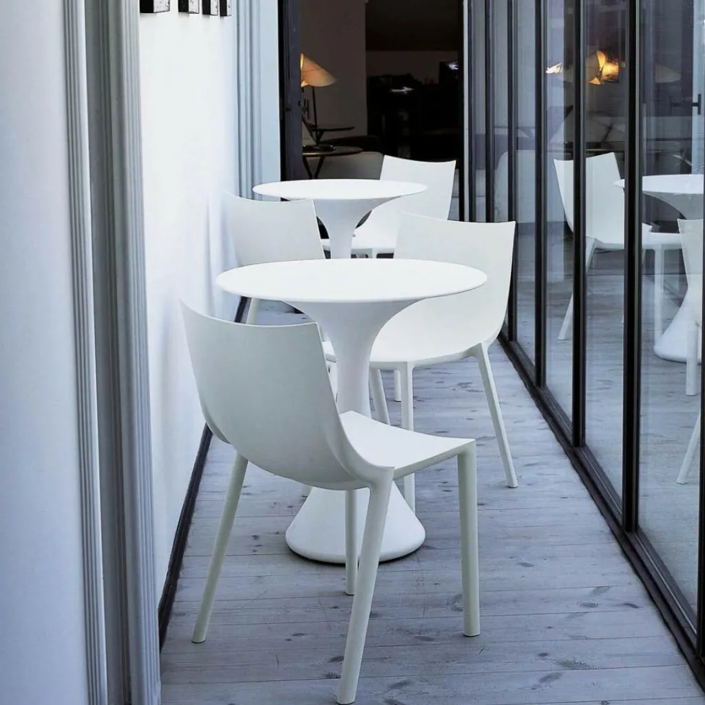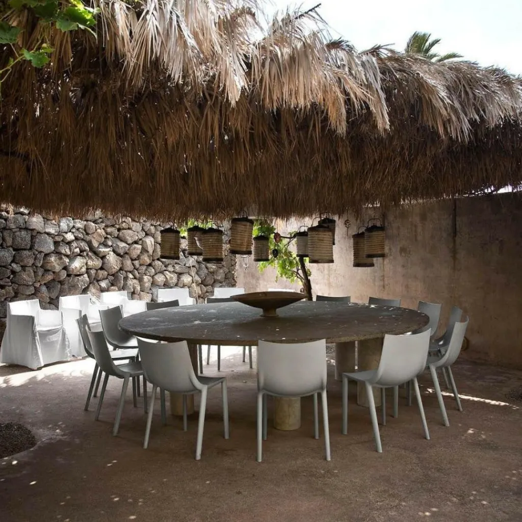 Der Bo Gartenstuhl wurde von Philippe Starck für die Marke Driade entworfen. Er ist ein Meisterwerk schlichten Designs, das für den Innen- und Außenbereich geeignet und dazu überaus bequem zum Sitzen ist.