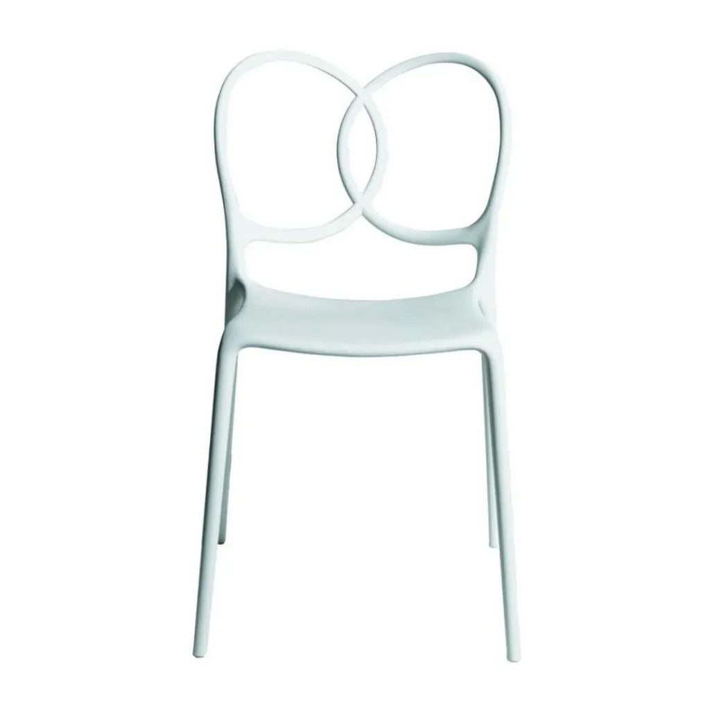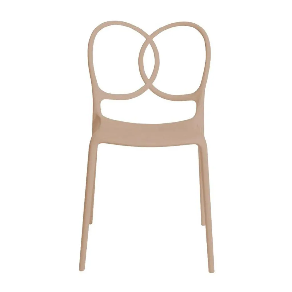Der Sissi Gartenstuhl verströmt mit seiner femininen Silhouette wohnliches Flair. Die Rückenlehne ist aus zwei Ringen zusammengesetzt, die sich in der Mitte schneiden. Die Sitzfläche ist leicht tailliert und die Beine sind leicht nach außen gestellt. Hergestellt wird der Sissi Gartenstuhl aus Polypropylen-Copolymer mit einem Glasfaseranteil. Die Füße werden aus halbweichem Polyethylen gefertigt. Das Material des Stuhls ist ideal für den Außenbereich: Es ist wetterfest und robust. Der Stuhl stellt im Garten, auf der Terrasse oder im Freibereich eines Cafés oder Restaurants eine bequeme Sitzgelegenheit dar.
