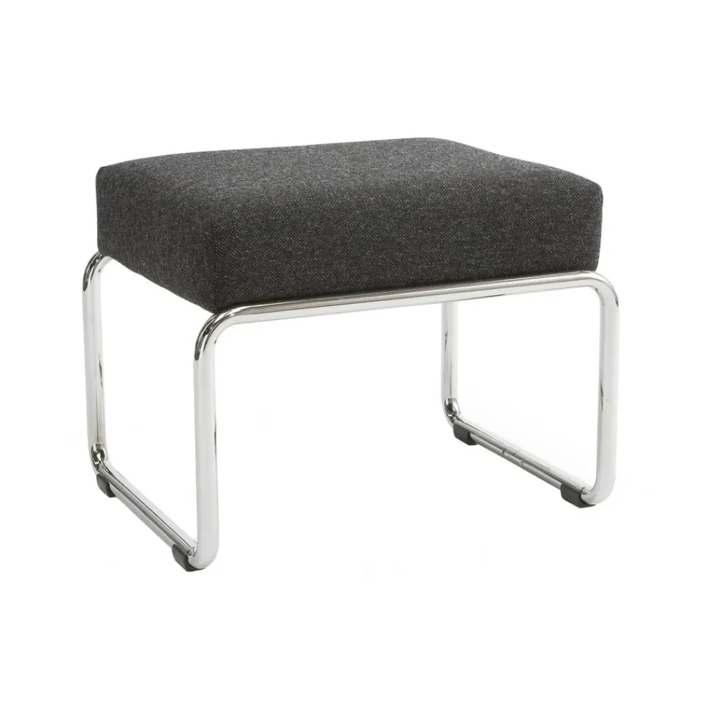 Ein rechteckiges hohes Federkernpolster und ein raffiniert zu einem quaderförmigen Gestell gebogener Stahlrohrrahmen bilden die Grundelemente dieses formschönen Möbelstücks. Damit fällt der Moser Modell 1552 Hocker durch ein minimalistisches Design auf und begeistert zudem mit seiner kuscheligen Weichheit. Er kann als Hocker verwendet werden, zum Ablegen der Beine vor einen gemütlichen Lehnsessel oder vor ein Sofa geschoben werden. Die Bezugstoffe der Marek Kvadrat bestehen wahlweise aus einem Schurwolle-Nylon- oder einem Schurwolle-Viskose-Gemisch und zeichnen sich durch eine hohe Strapazierfähigkeit aus. Mit seinem verchromten Gestell passt der Moser Modell 1552 Hocker ebenso in die Lounge oder Lobby eines Hotels wie ins Wohnzimmer.