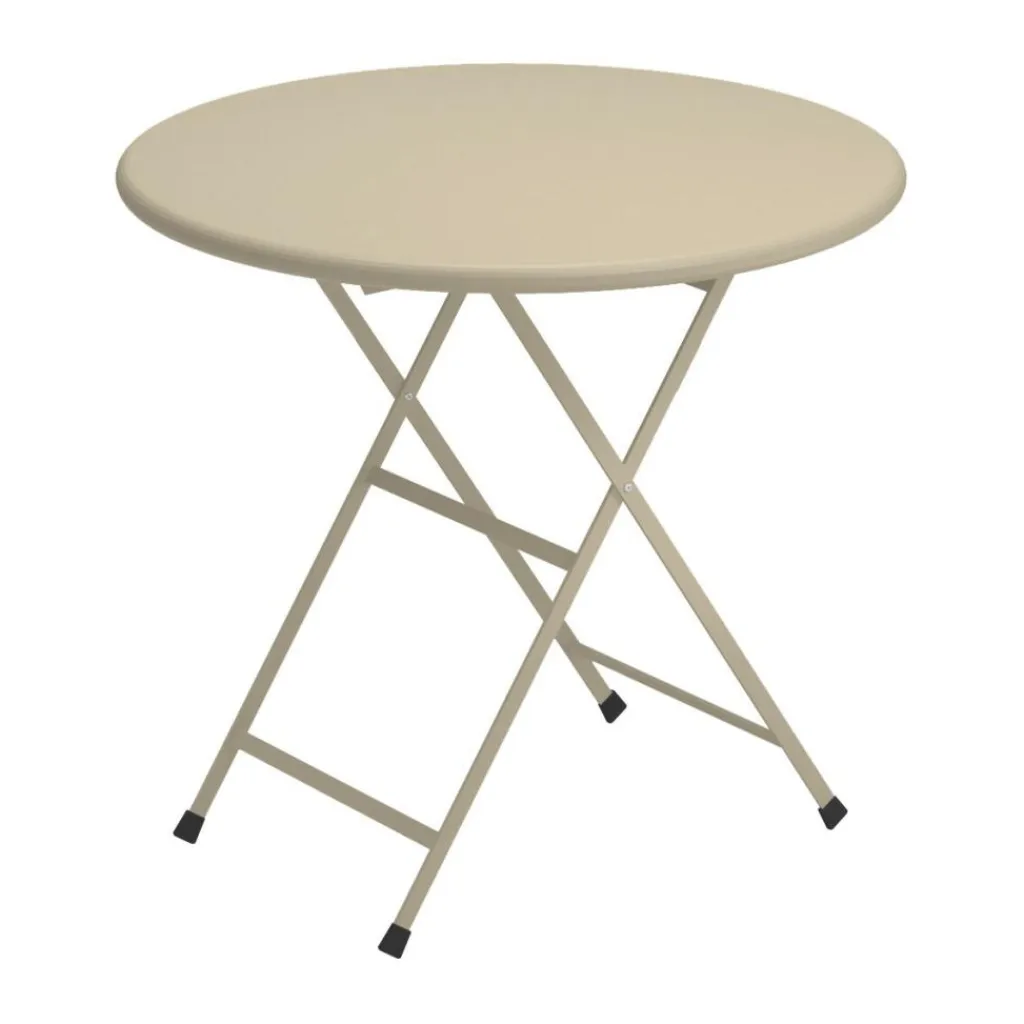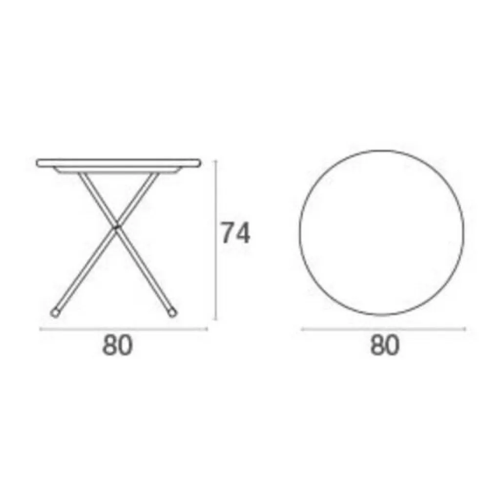 Auf der runden Tischplatte können Speisen, Getränke, Bücher und viele weitere Utensilien abgestellt werden. Der Durchmesser der Tischplatte beträgt 80 cm. Das Modell ist 10,1 kg schwer. Die Höhe beträgt 74 cm. Man kann den Arc en Ciel Gartenesstisch klappbar Ø 80cm in verschiedenen Farben kaufen.
