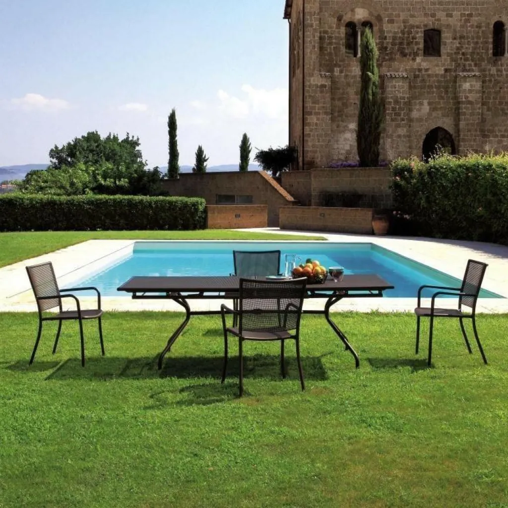 Der Athena Gartentisch ausziehbar 160x90cm verblüfft durch seine schlichte Eleganz, die mit einer maximalen Funktionalität einhergeht. Durch seine einfache, aber geniale Beschaffenheit fügt sich der Tisch harmonisch in seine Umgebung ein, so dass er in jedem Garten und auf jeder Terrasse eine gute Figur macht. Zugleich ist der Tisch aus hochwertigem Stahl in vielen verschiedenen, attraktiven, pulverbeschichteten Farbnuancen erhältlich, wie Antikeisen, Weiß, Schwarz und Indisch Braun.