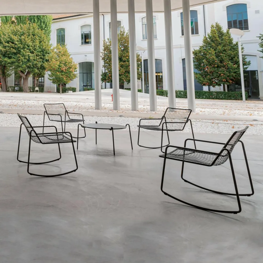 Der Rio R50 Lounge Schaukelstuhl wurde von Emanuel Gargano und Anton Cristell für die Marke Emu entworfen. Der gebürtige Italiener Gargano und Cristell, ein New Yorker Designer, der in Rom lebt, schufen unter dem Zeichen der Industrialisierung eine Kollektion von Sitzmöbeln, die ebenso strapazierfähig wie anmutig wirken. Auch der Rio R50 Lounge Schaukelstuhl verbindet diese Elemente miteinander und schafft so eine gemütliche Sitzgelegenheit sowohl für den Innen- als auch für den Außenbereich.
