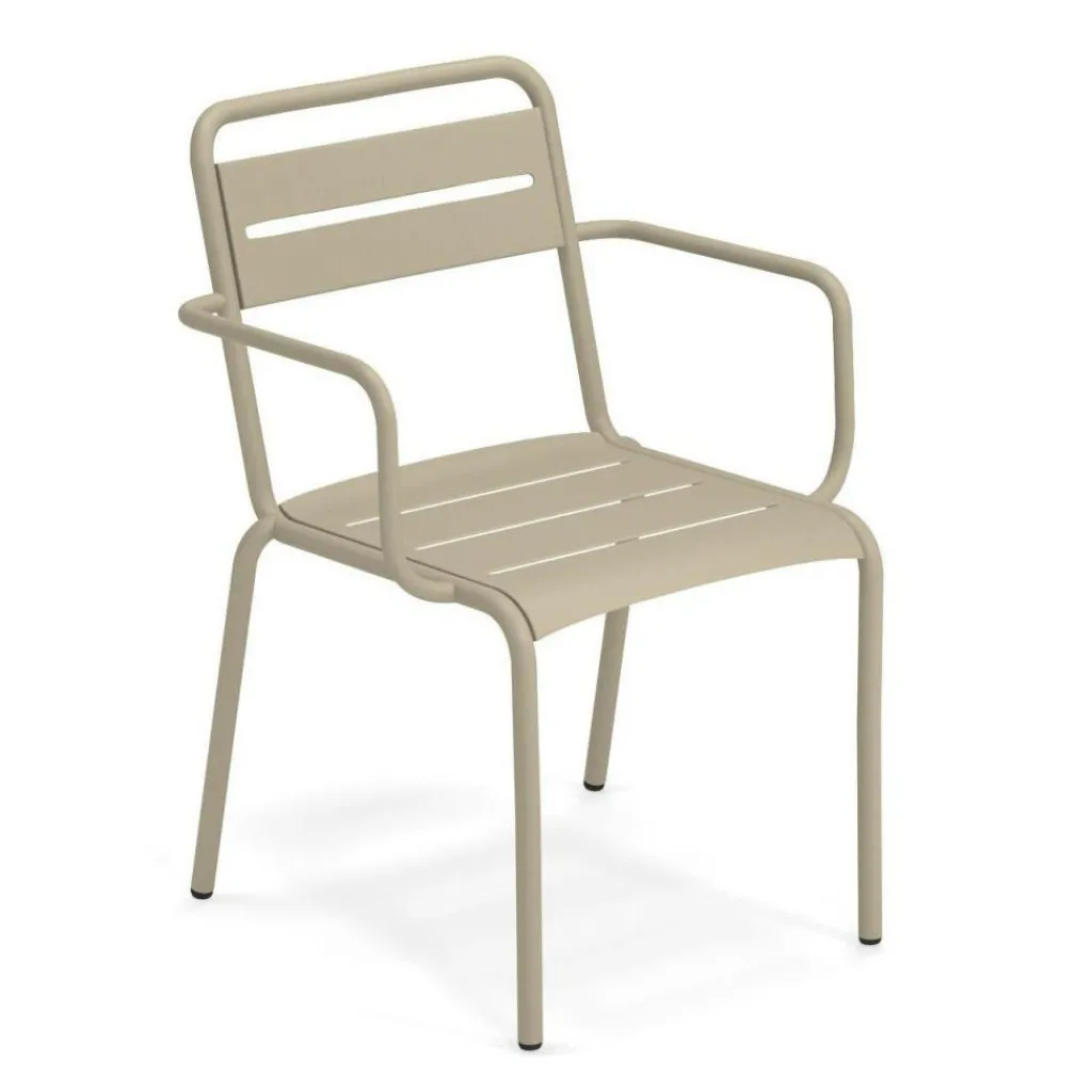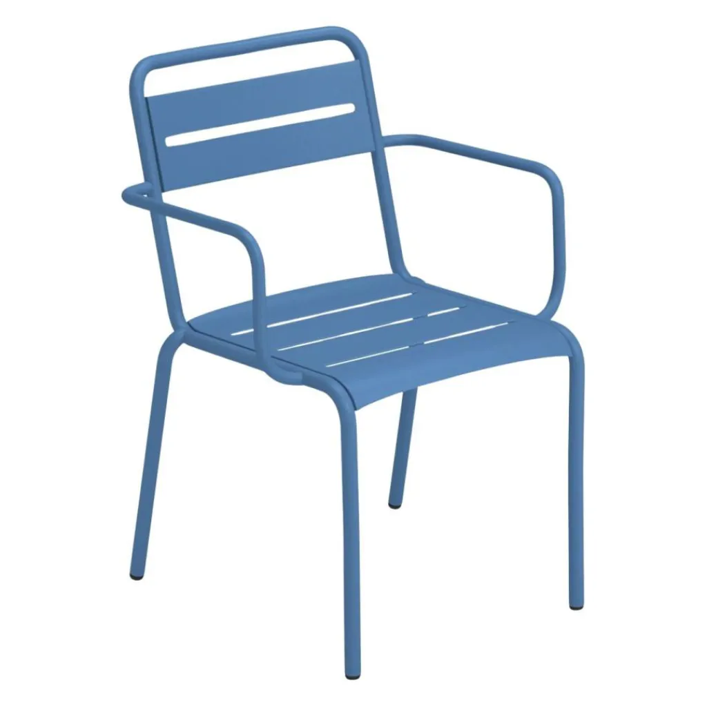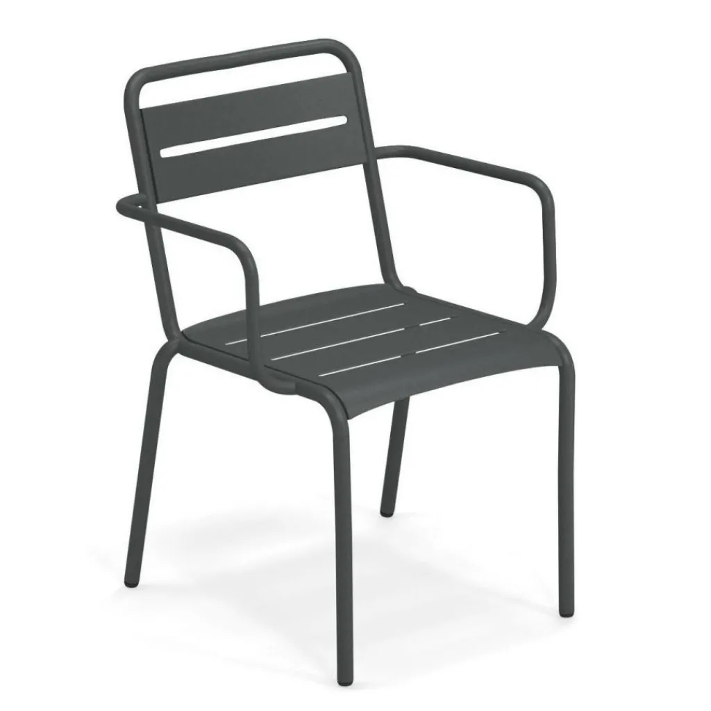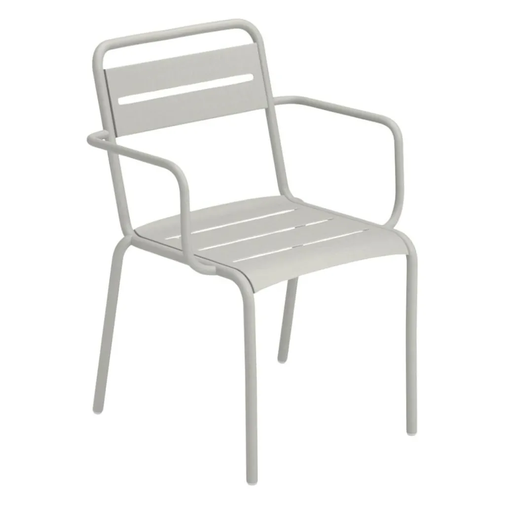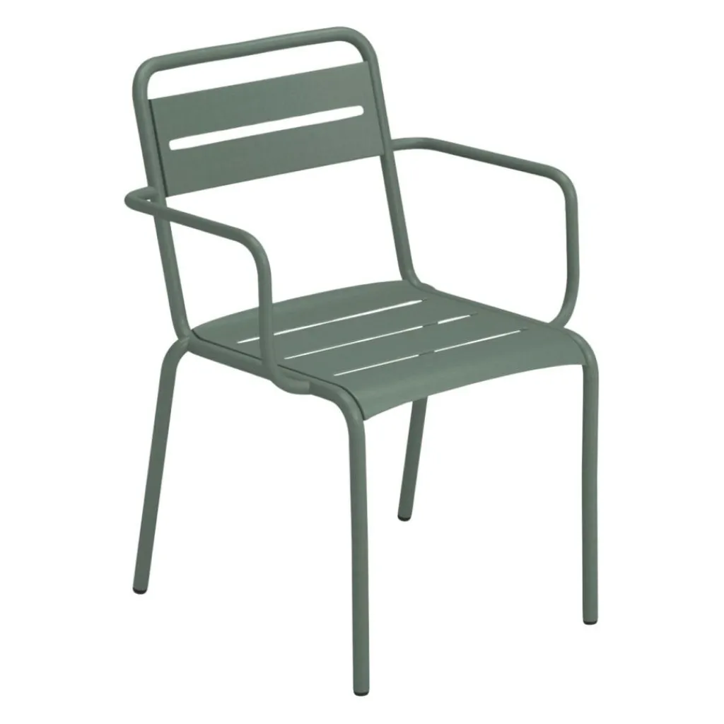 Der Star Gartenarmlehnstuhl wurde für die Marke Emu entworfen. Er reiht sich ein in eine ganze Serie hochwertiger Outdoormöbel aus pulverbeschichtetem Stahl. Eine klare Formensprache und erstklassige Qualität sind die Markenzeichen der Kollektion.