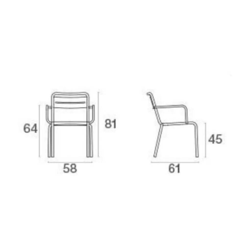 Wird der Star Gartenarmlehnstuhl einmal nicht gebraucht oder muss verstaut werden, kann er leicht gestapelt werden. Bis zu acht Exemplare passen übereinander. Der klassische Metallsessel ist 61 cm breit und 81 cm hoch, die Armlehne befindet sich auf 64 cm Höhe. Die Sitzhöhe beträgt 45 cm. Somit passt der Stuhl zu den Tischen der Star-Serie und zu anderen Gartentischen perfekt.