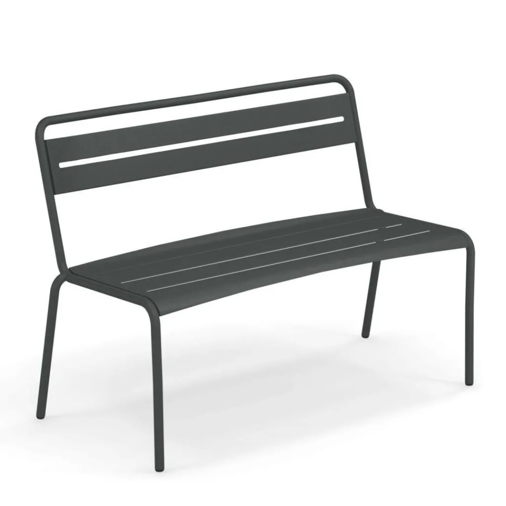 Die Star Gartenbank 118cm wurde für die Marke Emu entworfen. Sie ist Teil einer umfangreichen Kollektion an Gartenmöbeln, die auch Tische in verschiedenen Größen und Stühle beinhaltet. Typisch für die Kollektion sind der einfache Stil und die abgerundeten Kanten.