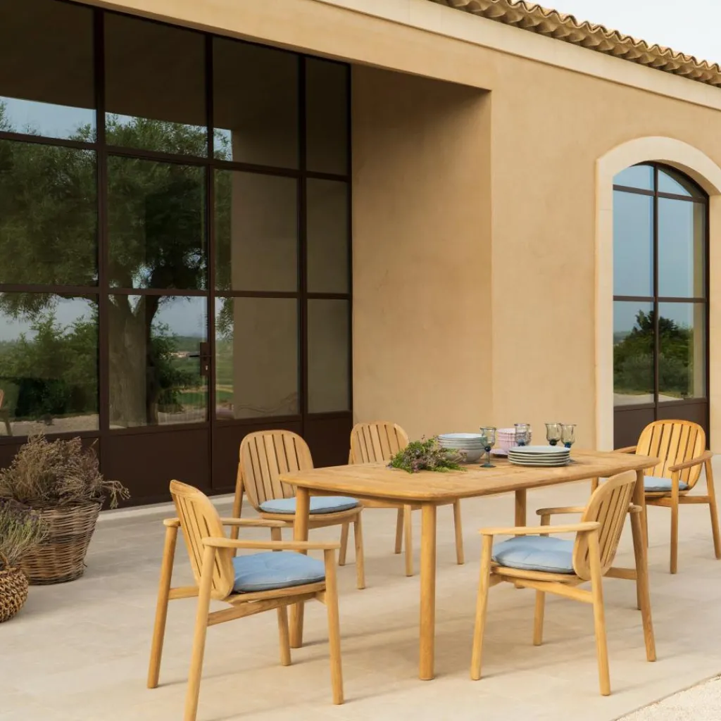 Der Twins Gartenarmlehnstuhl Teak wurde von Sebastian Herkner für die Marke Emu entworfen. Die Twins-Familie besteht aus Tischen und Sofas, die speziell für den Outdoorbereich konzipiert werden. Sie machen im privaten Umfeld und im gewerblichen Kontext eine hervorragende Figur.