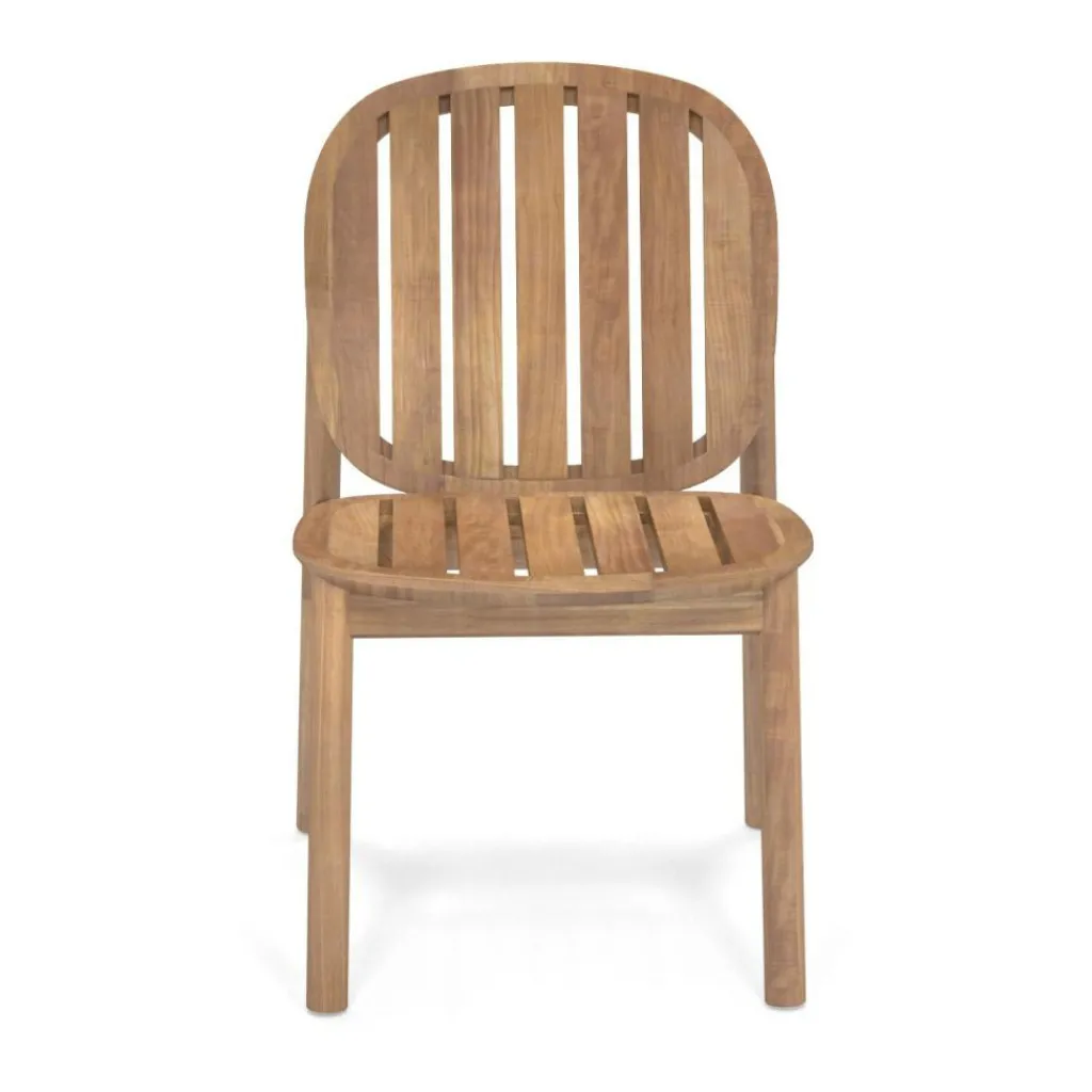 Der Twins Gartenstuhl Teak besteht aus einem nachhaltigen Material. Da das Teakholz aus verantwortungsvoller Forstwirtschaft stammt, ist er eine nachhaltige Wahl. Das Design ist schlicht: Die Beine aus Rundholz sind vorne weiter ausgestellt als hinten. Die Sitzfläche und die Rückenlehne sind deutlich abgerundet. Sie sind auch Latten zusammengesetzt mit sichtbaren Schlitzen. Durch sie kann Nässe rasch abfließen. Wird das Möbelstück mit einem weichen Tuch abgewischt, kann es nach einem Regenguss rasch wieder eingesetzt werden. Möchte man die Patina verhindern, die auf natürliche Weise entsteht, ist der Einsatz eines speziellen Pflegemittels zu empfehlen.
