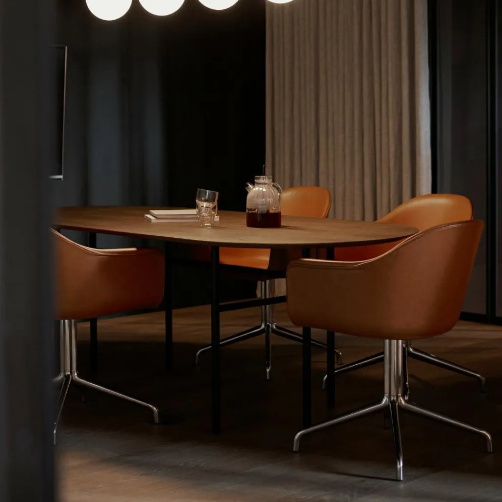 Der Snaregade Esstisch oval wurde von Norm Architects für die Marke Audo entworfen. Ursprünglich wurde er für das private Wohnzimmer des Firmengründers der Marke Audo Bjarne Hansen konzipiert. Die Ansprüche waren hoch: Es sollte sich um ein ästhetisches Modell im typisch skandinavischen Stil handeln, das noch dazu eine starke geometrische Präsenz hat.