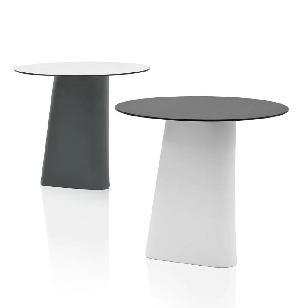 Der Fuß beim Adam Tisch von B-Line bildet ein Dreieck, das in eine runde Tischplatte übergeht. Der Tisch ist für indoor und outdoor geeignet und besteht aus wetterbeständigem Polyethylen, das im Rotomoulding-Verfahren geformt wurde. Eine innere Stütze aus Stahl sorgt für extra Stabilität.