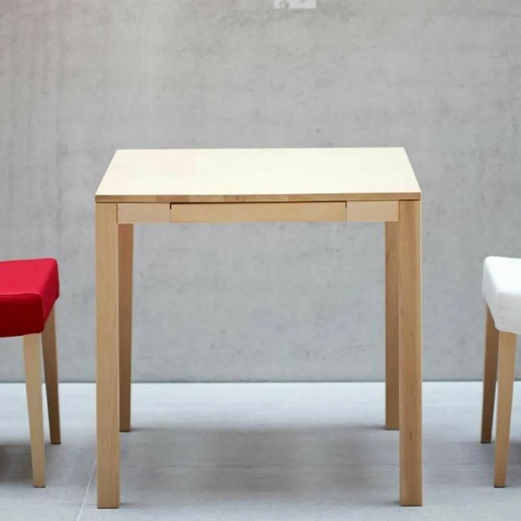 Mit den quadratischen Maßen von 75 x 75 cm sowie seiner Höhe von 75 cm ist der HAYa Esstisch mit Schublade ein treuer Begleiter für den Essbereich. Als Esstisch für die ganze Familie oder für eine Person: Das Modell aus dem Hause Jan Kurtz fügt sich harmonisch in jeden Einrichtungsstil von modern bis klassisch ein. Dazu trägt das gewachste Naturholz bei, aus dem der Rahmen und die Tischplatte bestehen.