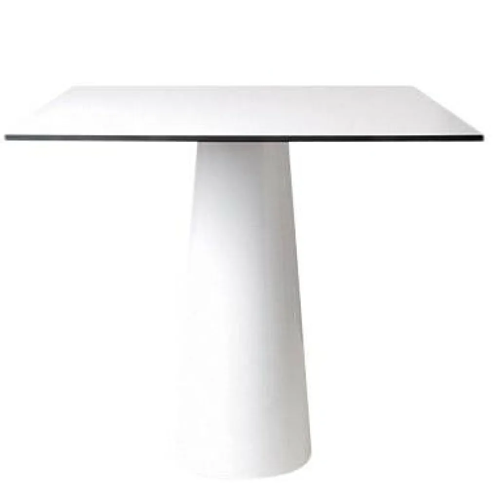 Der Container Table Tisch, hier mit der Tischplatte aus HPL und in der Größe 70x70cm/Ø70cm, wurde von Marcel Wanders für den niederländischen Hersteller Moooi entworfen. Diesen Tisch gibt es in vielen verschiedenen Varianten und Größen. Das Tischbein kann zur Beschwerung mit Sand gefüllt werden.