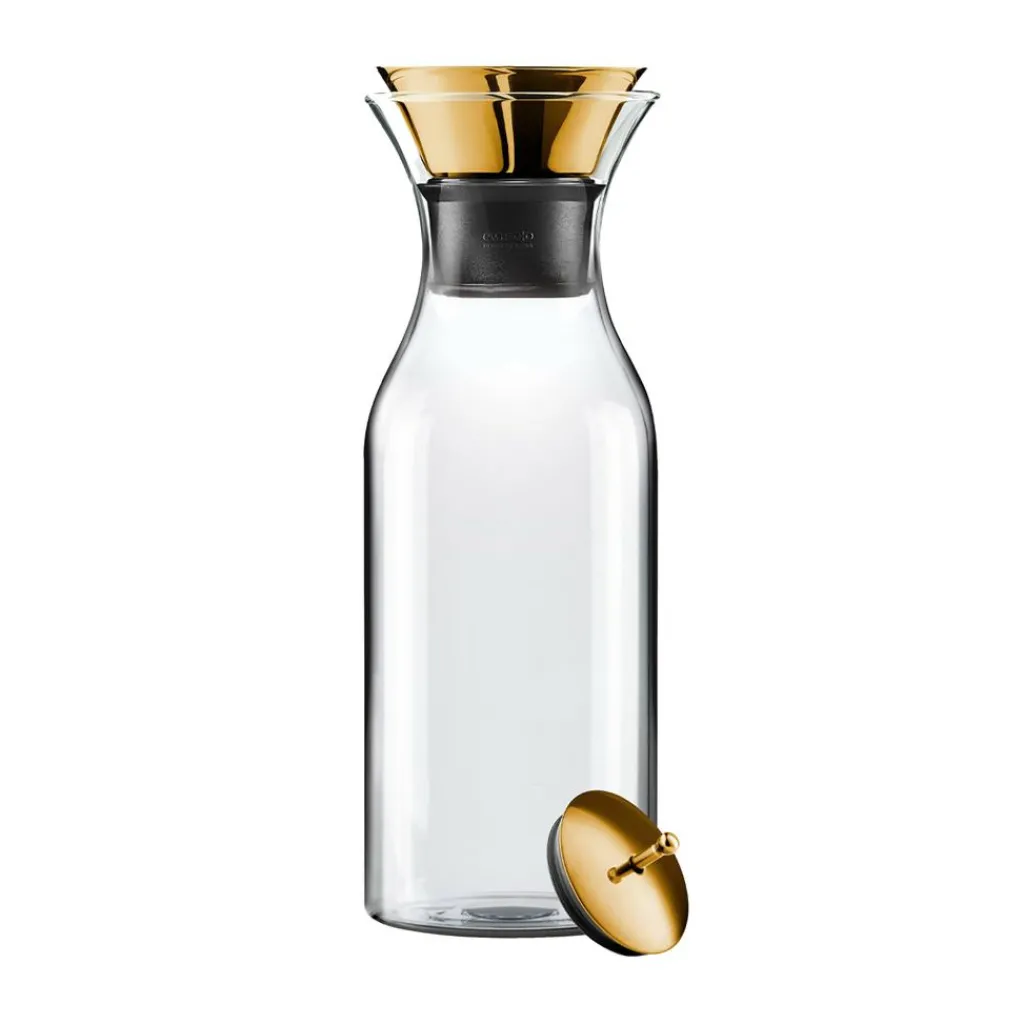 Mit ihren edlen messingfarbenen Details wird die Karaffe nicht nur zum funktionalen Begleiter im Alltag, sondern auch zum stilvollen Akzent auf jedem gedeckten Tisch.