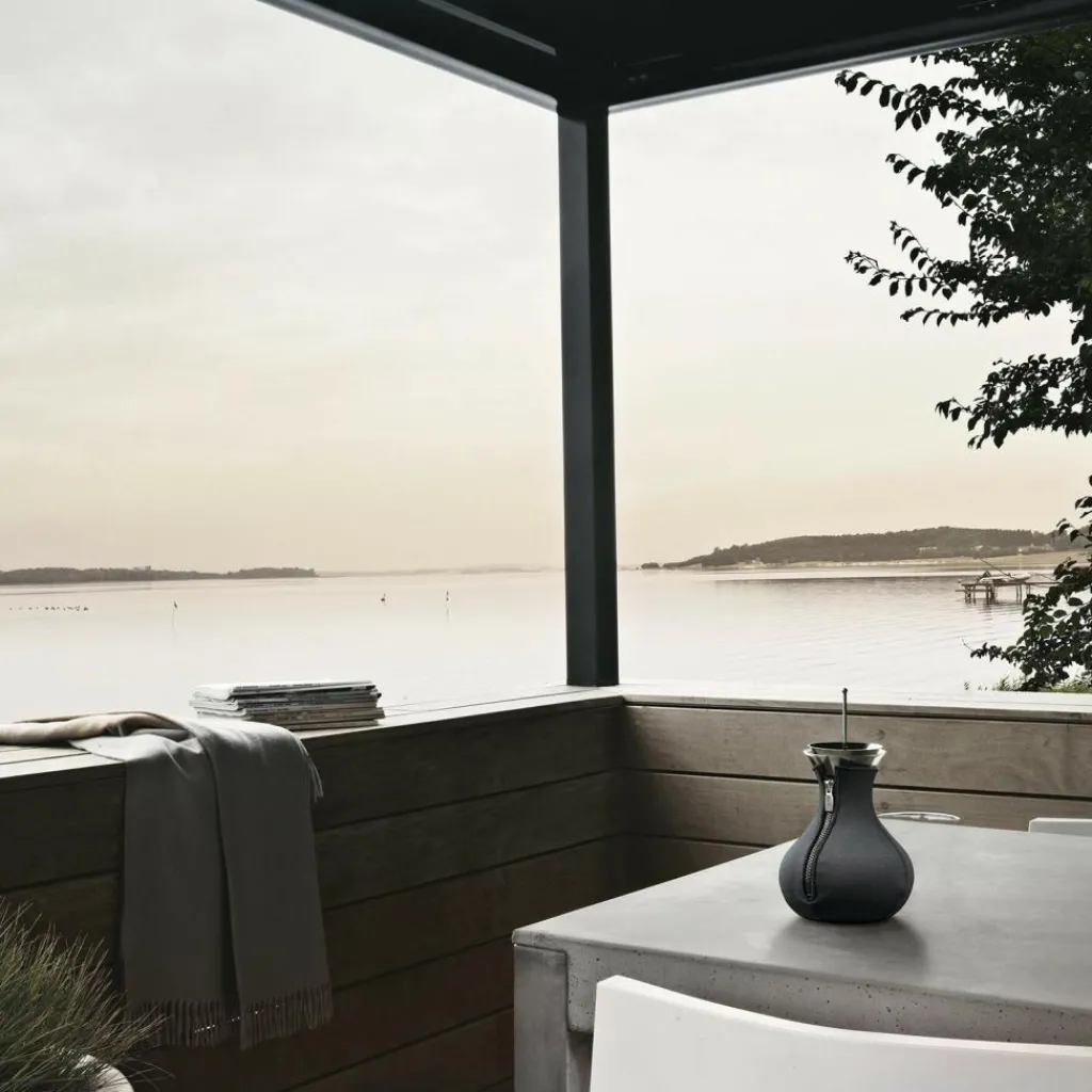 Hochgenuss durch althergebrachte Brühmethode im neuen Outfit des Eva Solo Teezubereiter bringen die Ursprünglichkeit von Tee stilvoll und funktional zurück. Der Neoprenanzug hält den Tee lange heiß und betont zudem die Formgebung der Teekanne.