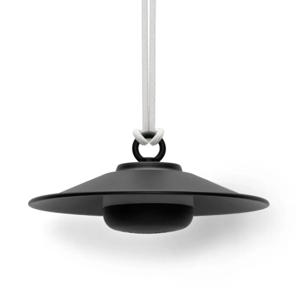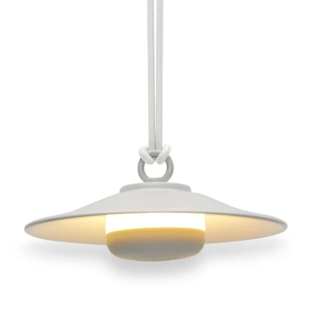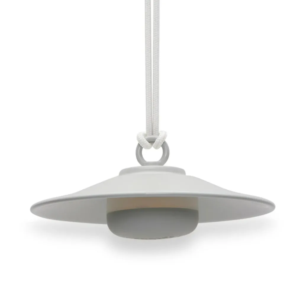 Als Anspielung auf klassische große Hängeleuchten besticht die Chap-O Outdoor LED Leuchte mit Akku durch ein kompaktes, schlichtes Design mit raffinierten Details. Das Modell besteht aus einem konischen Stahlschirm, der mit einem 80cm langen, verknoteten Nylonseil verbunden ist. Dieses Seil ermöglicht es, die Leuchte an einem Baum oder Haken unter der Decke aufzuhängen oder mittels der mitgelieferten Wandhalterung aus Stahl an jeder vertikalen Fläche anzubringen. Die Leuchtmitteleinheit aus ASB-Kunststoff und Silikon hängt durch einen starken Magneten an der Unterseite des Schirms, der je nach Farbe eine matte oder glänzende Oberfläche aufweist.