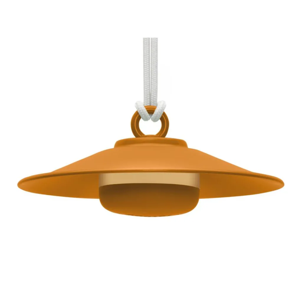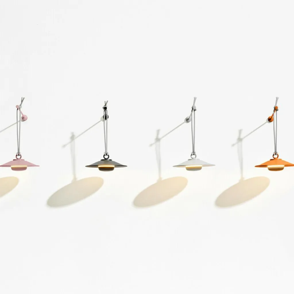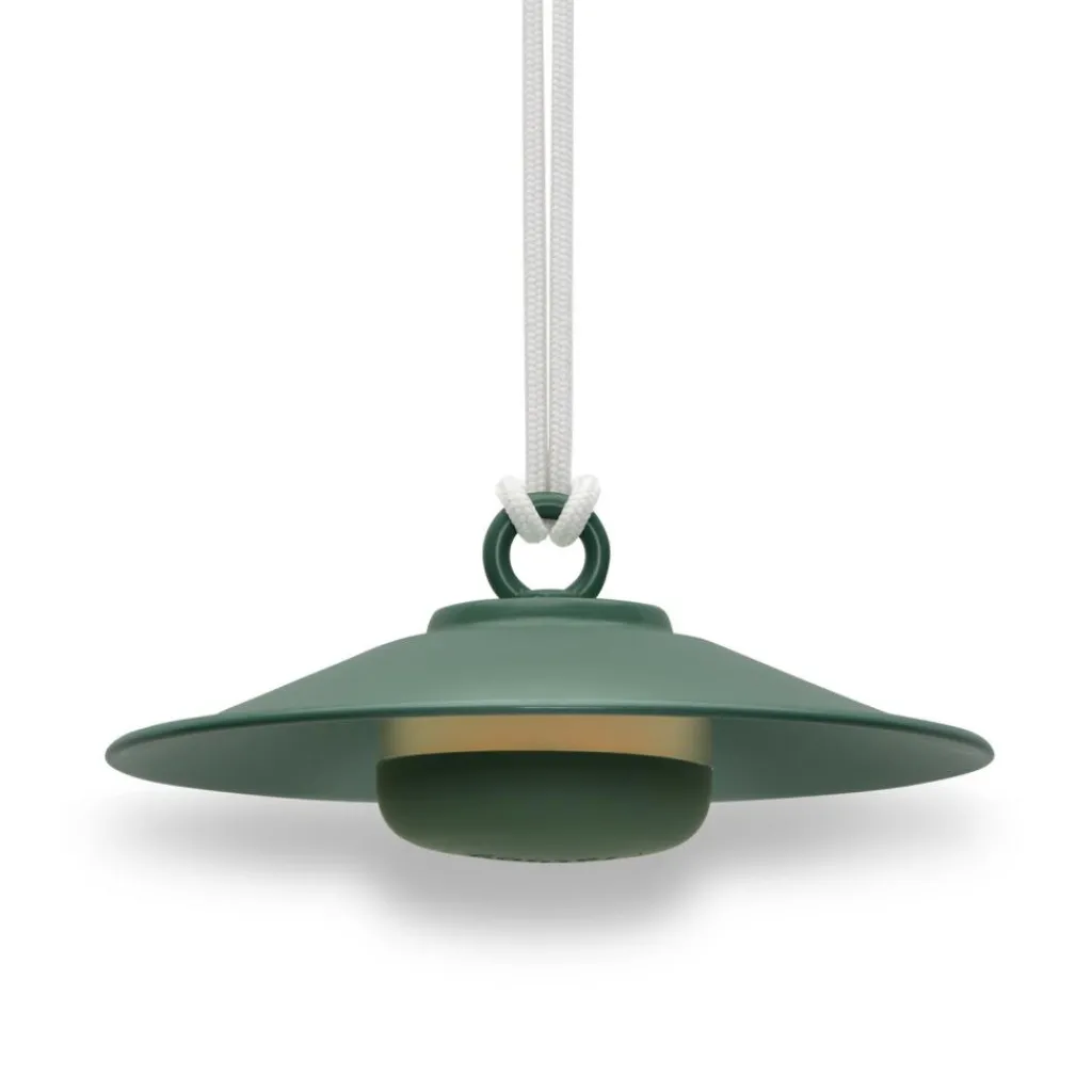 Als Anspielung auf klassische große Hängeleuchten besticht die Chap-O Outdoor LED Leuchte mit Akku durch ein kompaktes, schlichtes Design mit raffinierten Details. Das Modell besteht aus einem konischen Stahlschirm, der mit einem 80cm langen, verknoteten Nylonseil verbunden ist. Dieses Seil ermöglicht es, die Leuchte an einem Baum oder Haken unter der Decke aufzuhängen oder mittels der mitgelieferten Wandhalterung aus Stahl an jeder vertikalen Fläche anzubringen. Die Leuchtmitteleinheit aus ASB-Kunststoff und Silikon hängt durch einen starken Magneten an der Unterseite des Schirms, der je nach Farbe eine matte oder glänzende Oberfläche aufweist.