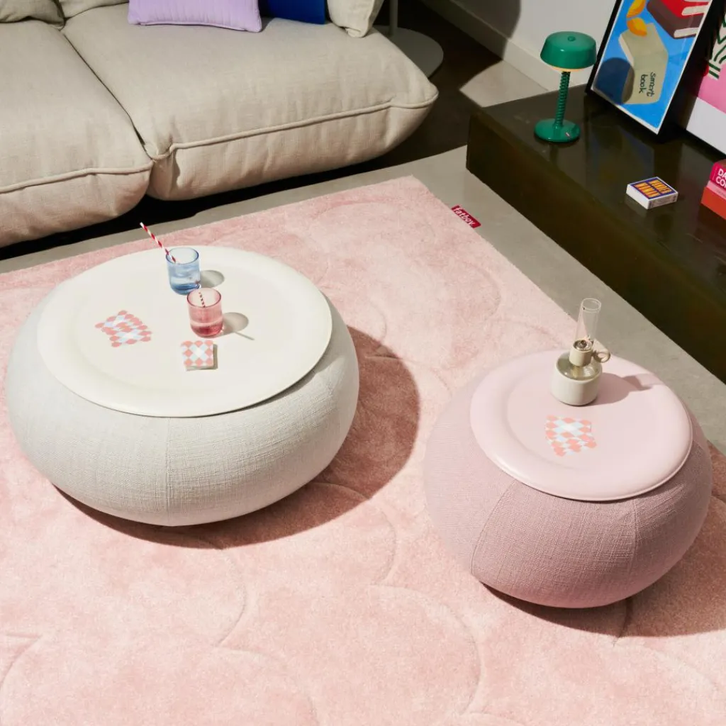 Der Dumpty Beistelltisch wurde für die Marke Fatboy entworfen. Der kleine Tisch ergänzt die kultigen Sitzsäcke des niederländischen Labels um ein innovatives Beistellmöbel, das sich bei Bedarf jederzeit aufblasen und flexibel im Raum arrangieren lässt.