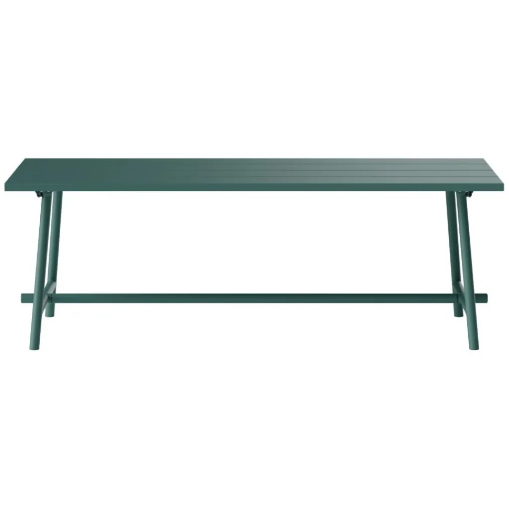 Zum Schlemmen unter freiem Himmel kommen Familie und Freunde am Exklusive Edition Fred’s Gartentisch klappbar 220x100cm garantiert gern zusammen. Wie ikonische Holzpicknicktische in der Natur besticht das exklusive Modell von Fatboy durch die breiten Leisten seiner Tischplatte. Der besondere Twist ist die Materialauswahl. Der gesamte Tisch wurde aus Aluminium gefertigt, das ihm Robustheit und zugleich ein leichtes, modernes Aussehen verleiht. Eine runde, lange Fußstrebe verbindet die leicht schräg gestellten Tischbeine und sorgt zusätzlich für Stabilität. Daneben bildet sie eine ideale Fußablage. Die Beine des Gartentisches lassen sich problemlos einklappen, sodass er zur Winterzeit platzsparend im Keller oder auf dem Dachboden verstaut werden kann. Dank seiner Wetterbeständigkeit kann der Tisch auch das ganze Jahr über draußen stehen bleiben. Zur Reinigung empfiehlt sich ein feuchtes Tuch.
