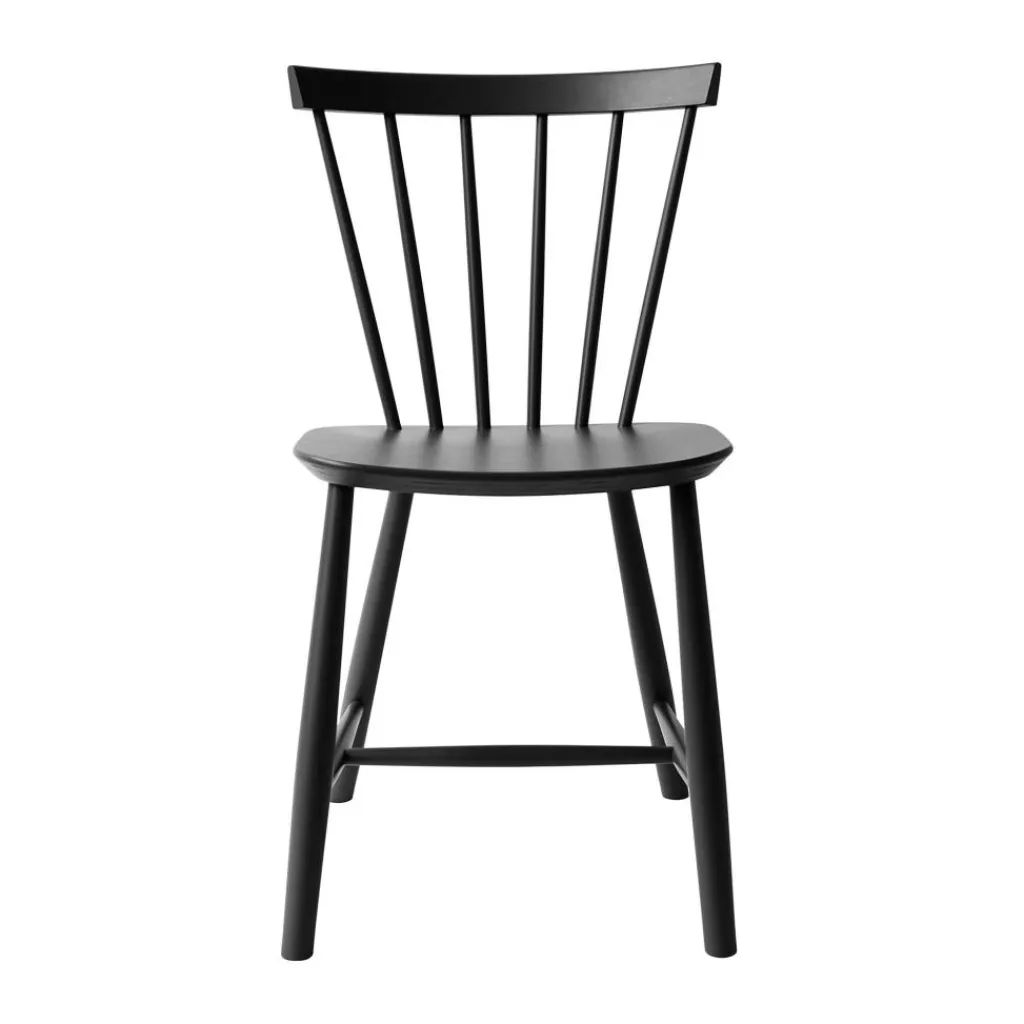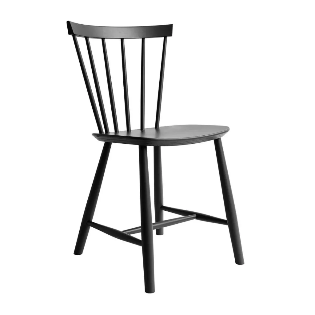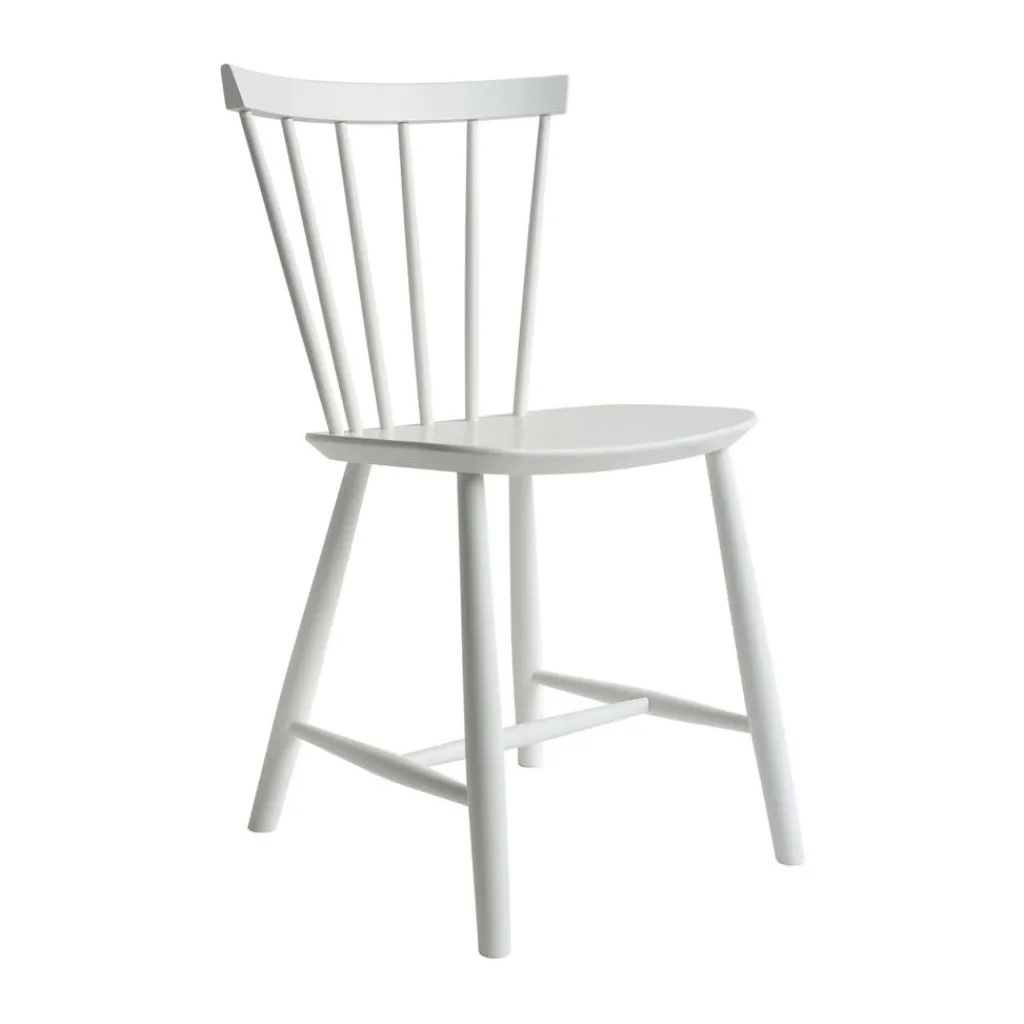 Die ergonomisch geformte Sitzfläche und eine stark gebogene Rückenlehne machen den J46 Stuhl zu einem einladenden Möbel, das einen bequemen Sitz auch bei längerem Gebrauch verspricht. Die speichenartig aneinandergereihten Rundstäbe seiner Lehne geben dem Stuhl zudem einen optischen Reiz. Formal passend sind auch die Stuhlbeine rund. Sie sind weit ausgestellt und mit Querstreben fixiert, was dem Designmöbel eine hohe Stabilität verleiht. Der J46 Stuhl ist aus hochwertigem Eichen- oder Buchenholz gefertigt, das aus FSC®-zertifizierter Herstellung stammt. Somit ist das komfortable und formschöne Sitzmöbel eine nachhaltige Wahl. In der Gruppe um einen Tisch gestellt, eignet sich der J46 Stuhl für das private Esszimmer ebenso wie für ein Restaurant oder die Kantine.