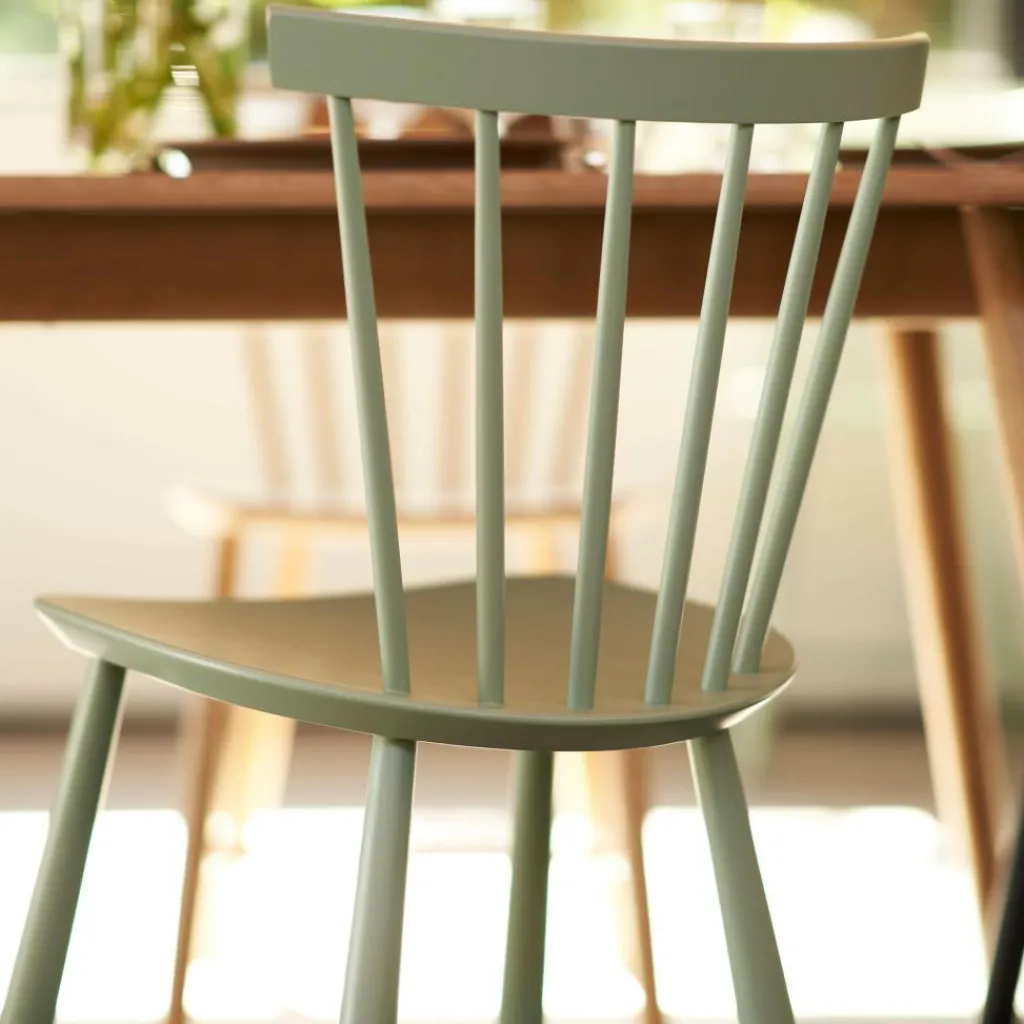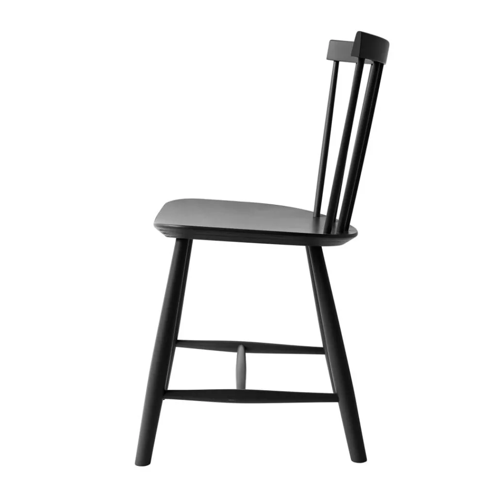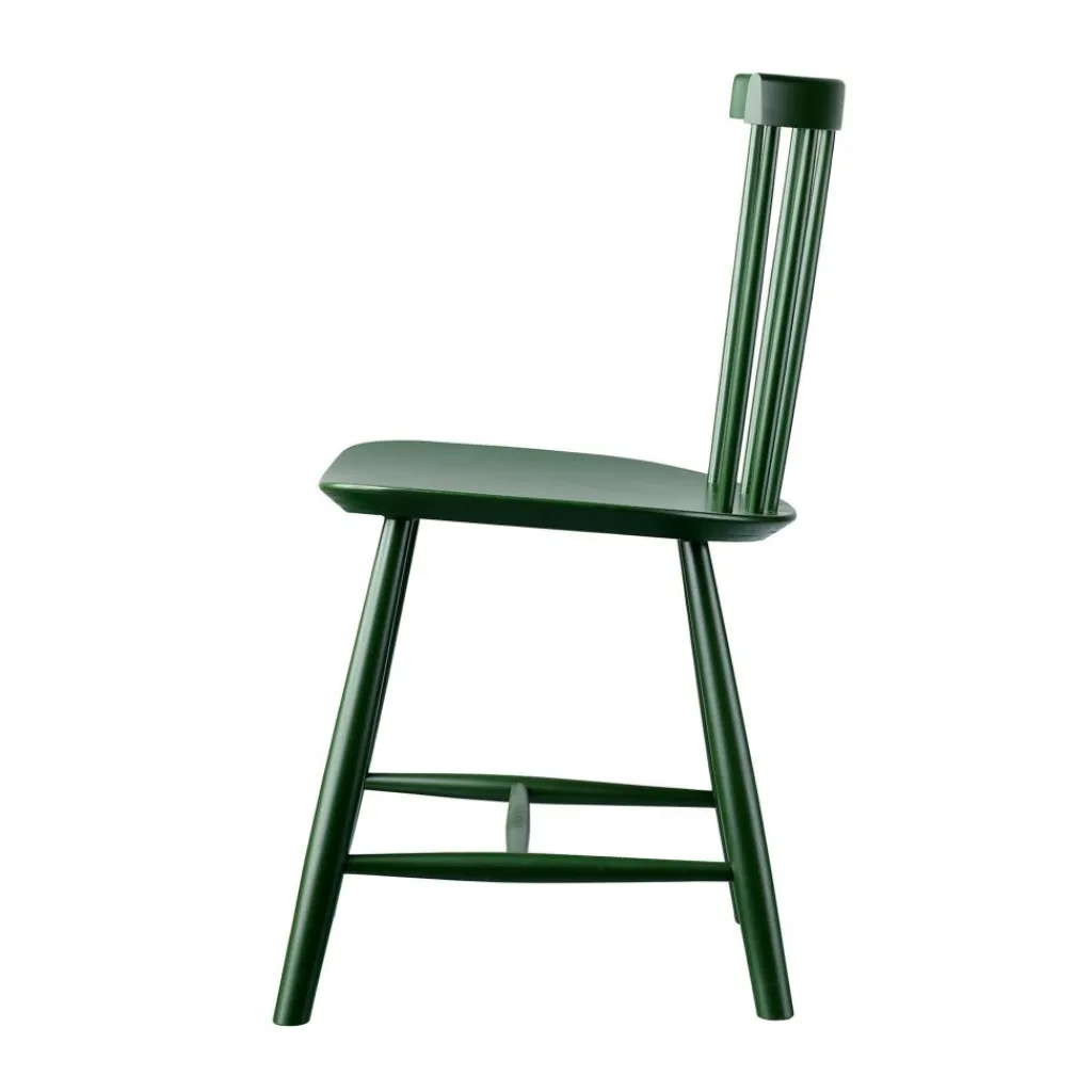 Die ergonomisch geformte Sitzfläche und eine stark gebogene Rückenlehne machen den J46 Stuhl zu einem einladenden Möbel, das einen bequemen Sitz auch bei längerem Gebrauch verspricht. Die speichenartig aneinandergereihten Rundstäbe seiner Lehne geben dem Stuhl zudem einen optischen Reiz. Formal passend sind auch die Stuhlbeine rund. Sie sind weit ausgestellt und mit Querstreben fixiert, was dem Designmöbel eine hohe Stabilität verleiht. Der J46 Stuhl ist aus hochwertigem Eichen- oder Buchenholz gefertigt, das aus FSC®-zertifizierter Herstellung stammt. Somit ist das komfortable und formschöne Sitzmöbel eine nachhaltige Wahl. In der Gruppe um einen Tisch gestellt, eignet sich der J46 Stuhl für das private Esszimmer ebenso wie für ein Restaurant oder die Kantine.
