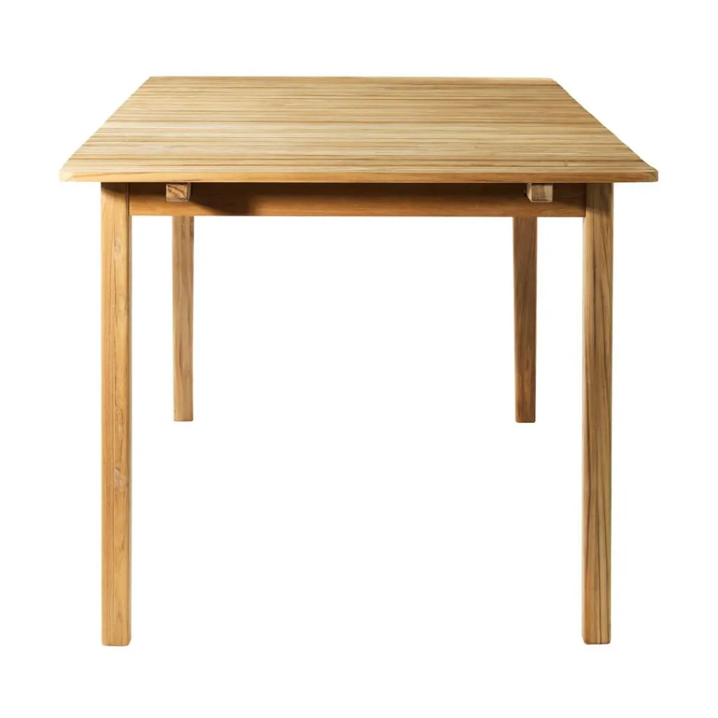 Der M2 Sammen Teakholz Gartentisch wurde von Thomas E. Alken für die Marke FDB Møbler entworfen. Ein geradliniges Design kennzeichnet die Modelle der Outdoorkkollektion, die dank ihres hochwertigen Materials zeitlos und edel aussehen.