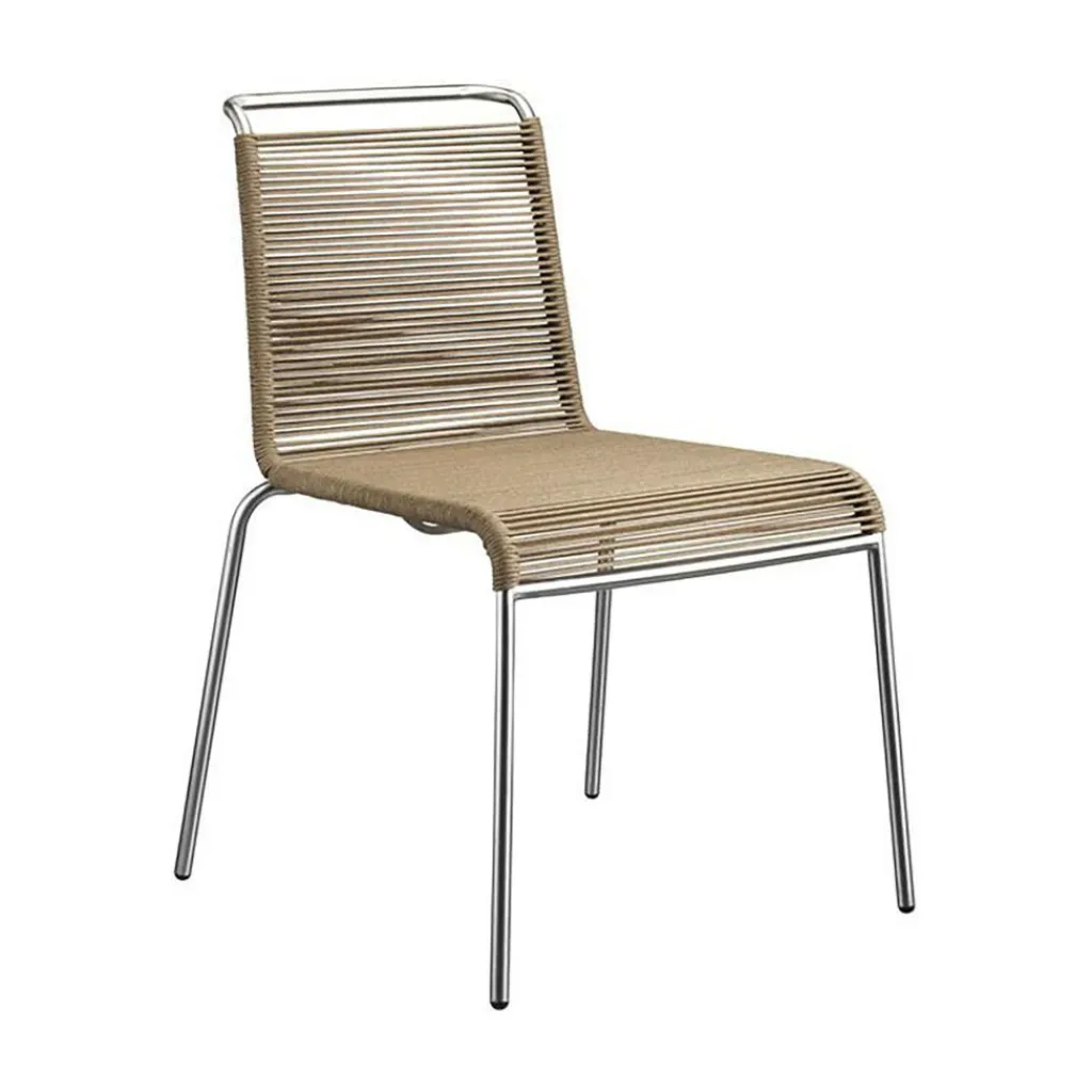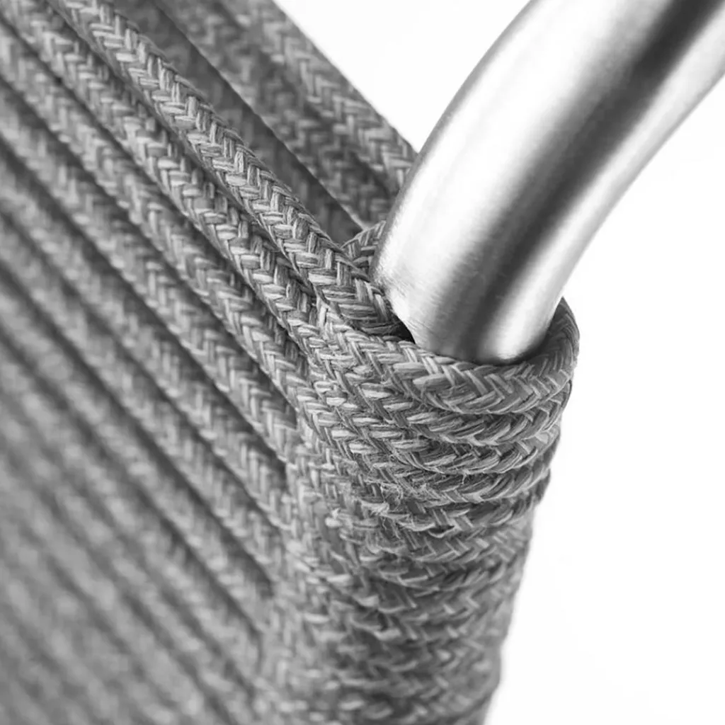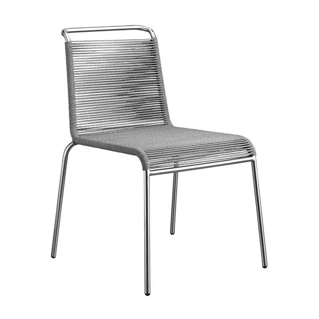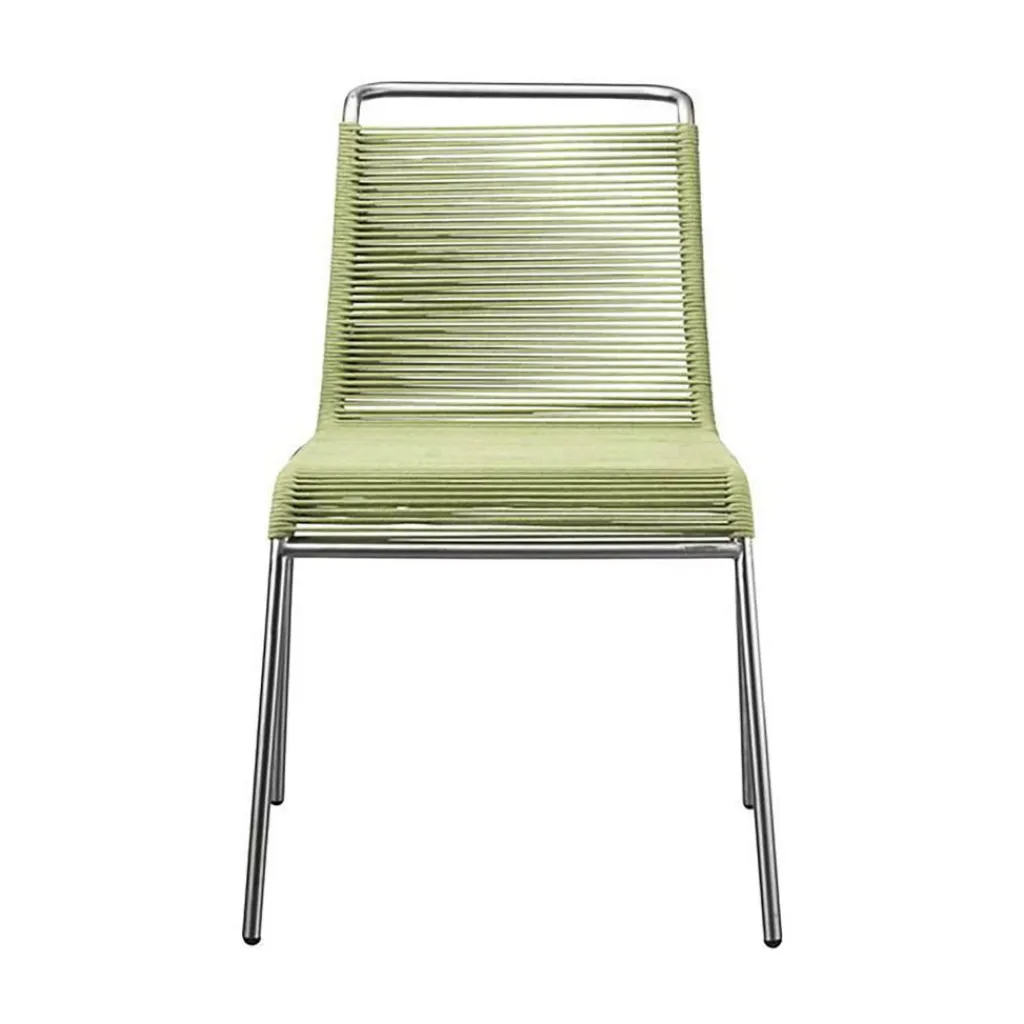 Als Basis verwenden die Designer für den M20 Teglgård Gartenstuhl rostfreien Stahl. Somit kann das Modell auch bei schlechtem Wetter im Freien bleiben. Sollte sich einmal eine längere Regenperiode ankündigen, kann der Stuhl gestapelt und platzsparend in einer Gartenhütte oder im Keller verstaut werden. Der elegante Stahlrohrrahmen weist an den Seiten abgerundete Kanten auf. Die Sitzfläche und die Rückenlehne sind aus Kordel hergestellt. Ein großer Vorteil ist, dass Nässe rasch zwischen den Kordeln abfließen kann. Somit ist der M20 Teglgård Gartenstuhl rasch wieder einsetzbar. Das textile Material wird in den Rahmen gespannt. Es gibt den M20 Teglgård Gartenstuhl in verschiedenen Farben. Die Sitzfläche ist an der Vorderseite ein wenig nach unten gezogen. An der Rückseite beschreibt der Rahmen einen leichten Knick nach hinten.
