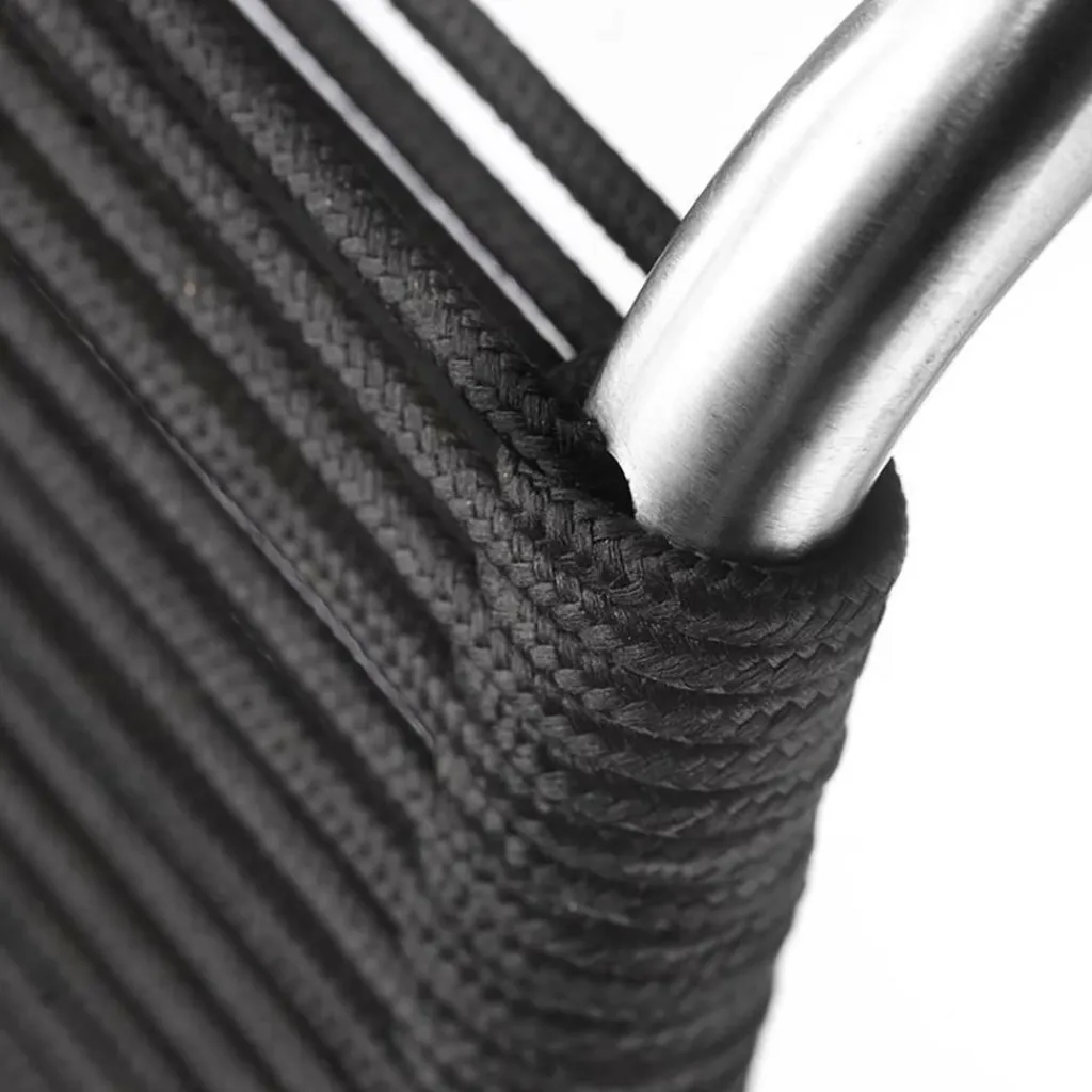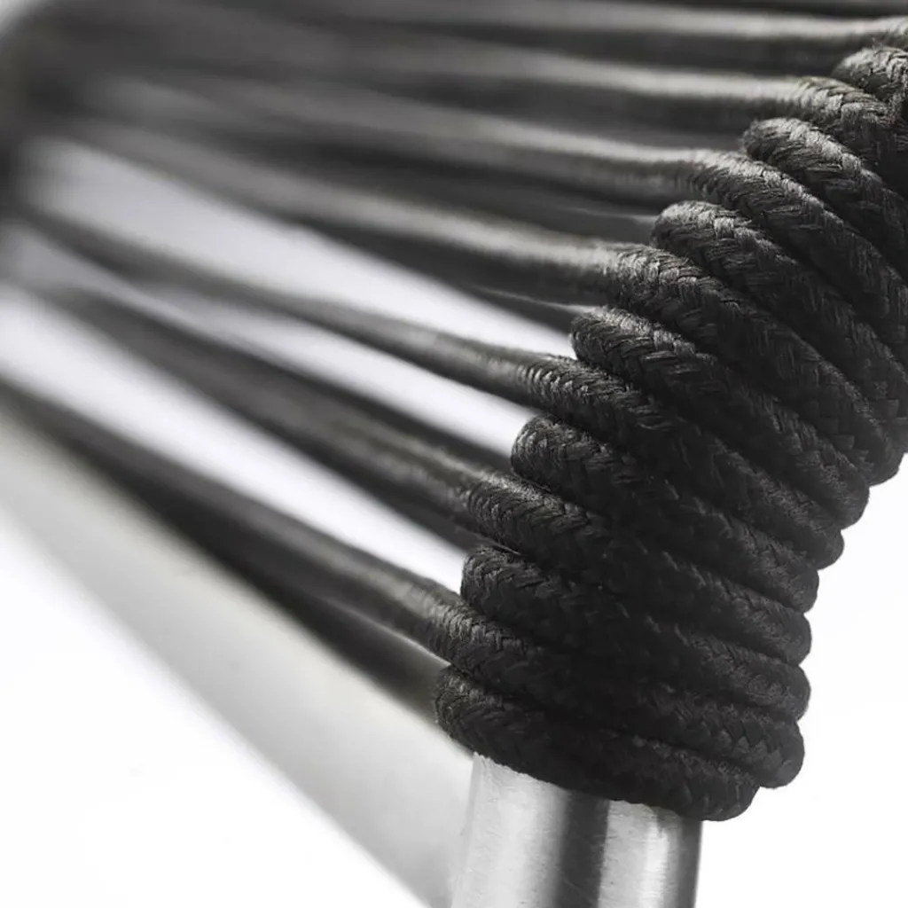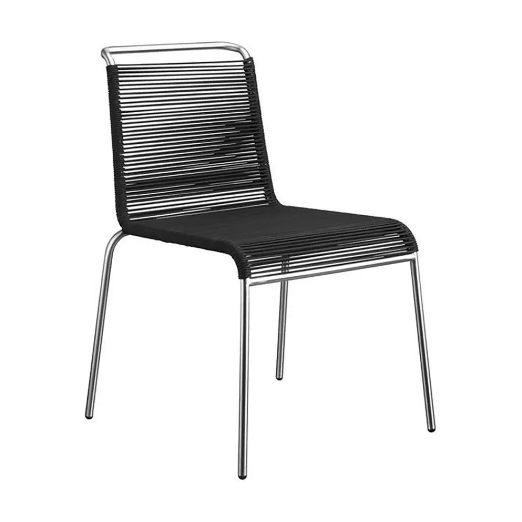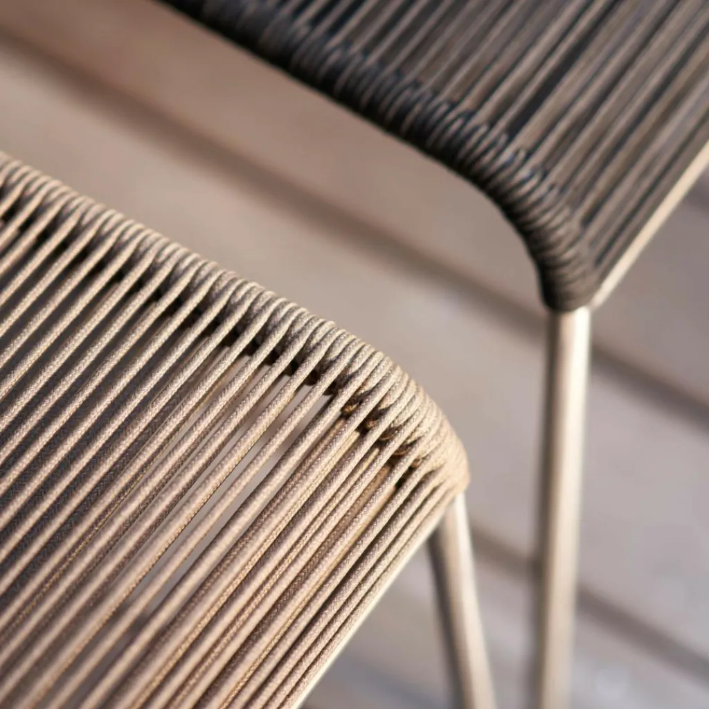 Als Basis verwenden die Designer für den M20 Teglgård Gartenstuhl rostfreien Stahl. Somit kann das Modell auch bei schlechtem Wetter im Freien bleiben. Sollte sich einmal eine längere Regenperiode ankündigen, kann der Stuhl gestapelt und platzsparend in einer Gartenhütte oder im Keller verstaut werden. Der elegante Stahlrohrrahmen weist an den Seiten abgerundete Kanten auf. Die Sitzfläche und die Rückenlehne sind aus Kordel hergestellt. Ein großer Vorteil ist, dass Nässe rasch zwischen den Kordeln abfließen kann. Somit ist der M20 Teglgård Gartenstuhl rasch wieder einsetzbar. Das textile Material wird in den Rahmen gespannt. Es gibt den M20 Teglgård Gartenstuhl in verschiedenen Farben. Die Sitzfläche ist an der Vorderseite ein wenig nach unten gezogen. An der Rückseite beschreibt der Rahmen einen leichten Knick nach hinten.