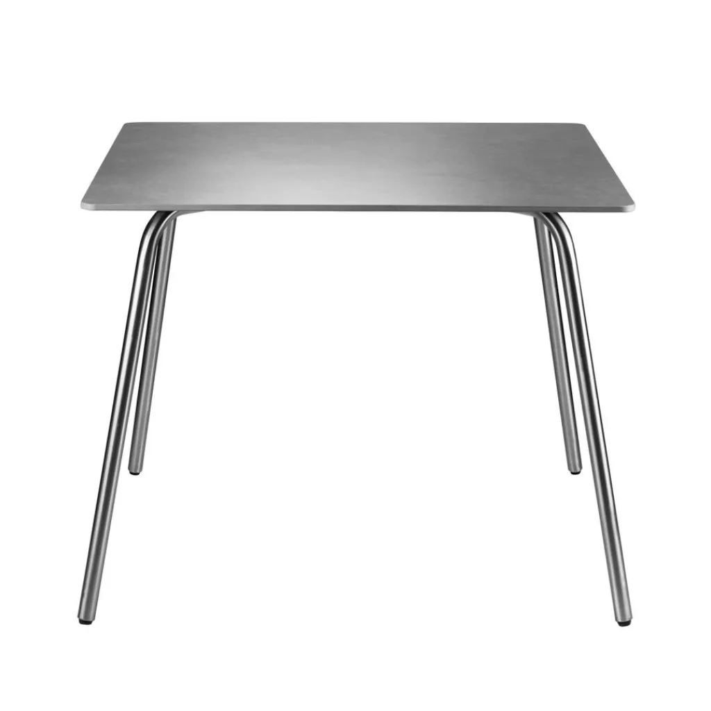 Seine schlanke Silhouette macht den M21 Teglgård Gartentisch 90x90cm zu einem attraktiven Blickfang. Er verdankt sie seiner kompakten Platte, die aus gesintertem Stein besteht und eine langlebige Robustheit sowie eine hohe Witterungsbeständigkeit garantiert. Gleichzeitig beeindruckt die dekorative Oberflächenstruktur. Abgerundete Tischkanten versprechen eine angenehme Haptik. Für einen stabilen Unterbau sorgt ein Rahmen aus rostfreiem Rundstahl. Dabei bieten die ausgestellten Beine viel Beinfreiheit beim Sitzen. Zusammen mit den gerundeten Ecken der Platte erzeugen die gebogenen Metallteile ein einheitliches Aussehen. Damit verbindet der M21 Teglgård Gartentisch 90x90cm eine solide Beständigkeit mit einer formschönen Optik. Er ist ideal für ein Terrassencafé und passt ebenso in einen Hotelgarten oder auf den Raucherbalkon am Arbeitsplatz oder vor ein privates Gartenhäuschen.