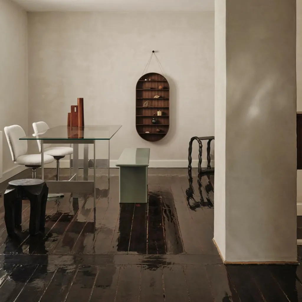 Rund um den Lager-Esstisch finden bequem sechs Personen Platz. Das Modell ist 200cm lang, 90cm breit und 76cm hoch. Sein Gewicht liegt bei 70,6kg. Passend zum Esstisch gehören zur Lager-Kollektion von Ferm Living ein Servierwagen und ein Wandregal aus Aluminium.