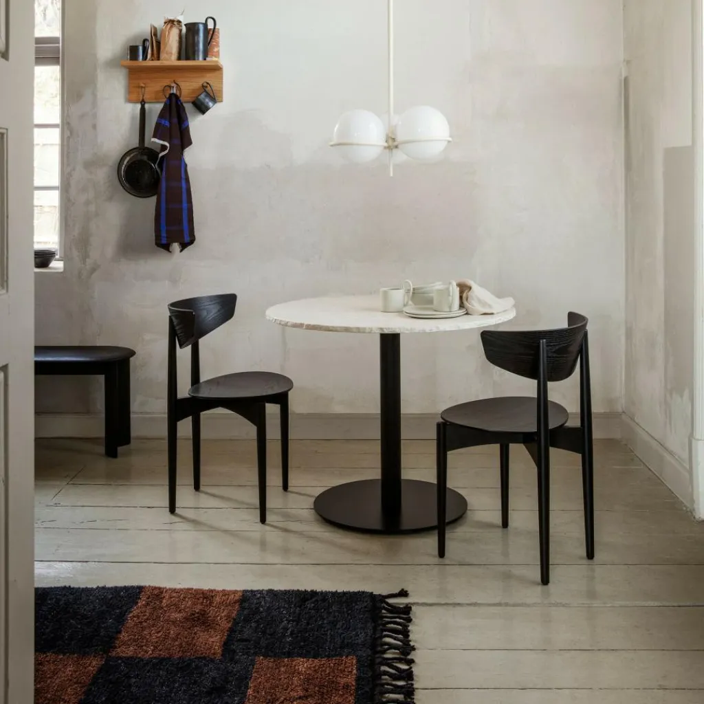 Der Mineral Esstisch wurde für die Marke Ferm Living entworfen. Er ist Teil einer Serie von extravaganten Tischen für den Wohnbereich. Die Bezeichnung deutet auf die Wahl des Materials hin. Denn Teile der Mineral-Tische sind aus hochwertigem Marmor gefertigt.