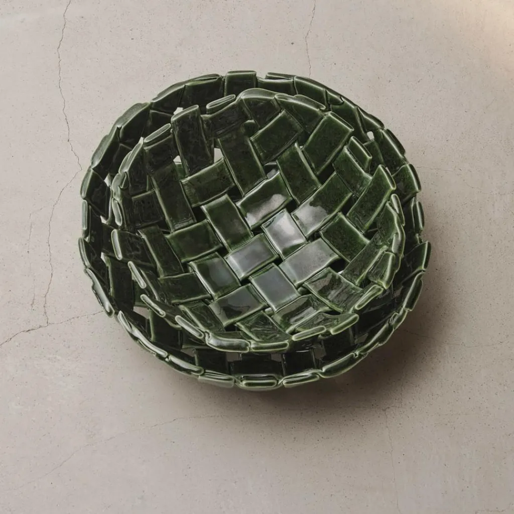 Die Plait Schale Ø 30cm entsteht in sorgfältiger Handarbeit: Streifen aus Keramik werden Stück für Stück miteinander verflochten, wodurch eine durchbrochene Struktur mit spannender Tiefe und filigraner Optik entsteht. Die Form erinnert an vertraute Alltagsobjekte wie geflochtene Taschen oder Stühle, wirkt aber durch das Material neu und überraschend modern. Jeder Artikel ist ein Unikat mit kleinen, charakteristischen Abweichungen, die der handwerklichen Herstellung geschuldet und ausdrücklich gewollt sind. Mit einem Durchmesser von 30 cm eignet sich die Plait Schale ideal als Blickfang auf dem Esstisch, in der Küche oder auf dem Sideboard. Ob gefüllt mit frischem Obst, Brot oder einfach als dekoratives Objekt – sie verbindet Funktionalität mit gestalterischem Anspruch. Der solide Fuß sorgt dabei für sicheren Stand, während die glasierte Oberfläche leicht zu reinigen ist – ein feuchtes Tuch genügt. Als schöne Ergänzung gibt es die Plait Schale auch in einer kompakten Version mit 24 cm Durchmesser. Ergänzt wird die Serie von Ferm Living durch eine flache Servierplatte im gleichen Stil – perfekt für ein harmonisches Gesamtbild im Wohn- oder Essbereich.