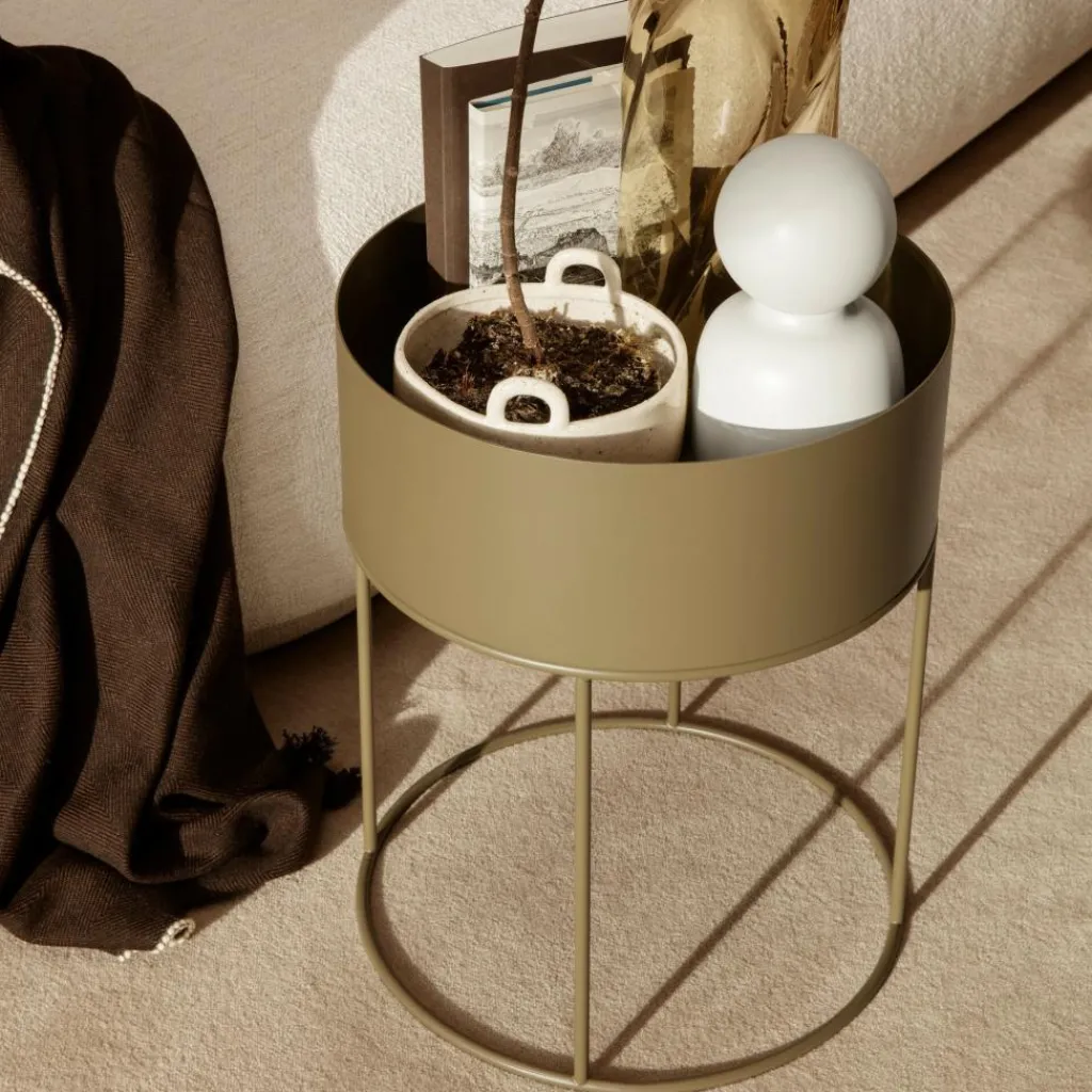 Die Plant Box rund wurde von Ferm Living für die Marke Ferm Living entworfen. Dabei handelt es sich um ein vielseitig einsetzbares Möbelstück, das in jeden Raum passt. Wie der Name schon vermuten lässt, kann man darin Grün- und Blühpflanzen einsetzen. Das Modell ist Teil einer Serie, die auch rechteckige Boxen in unterschiedlichen Größen umfasst.