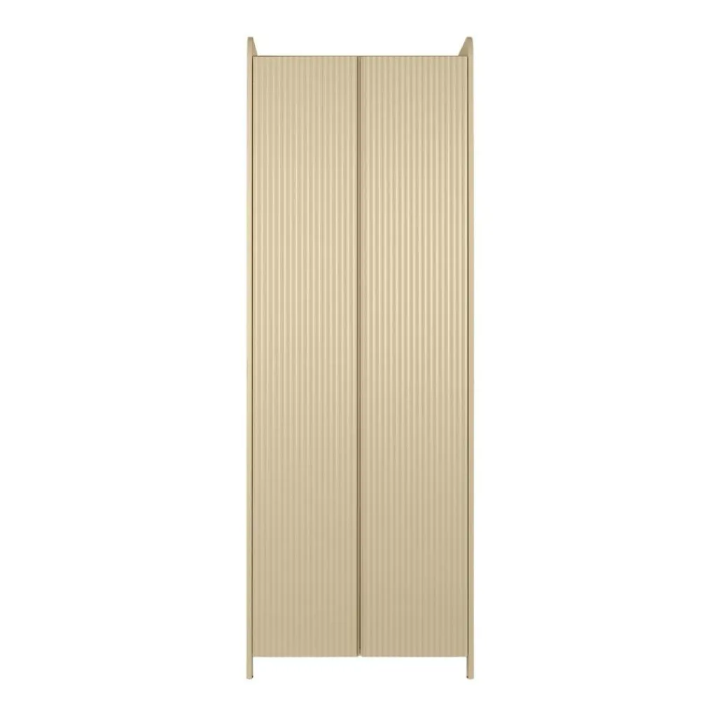 Der Sill Schrank bereichert jeden Raum: Im Wohnzimmer lassen sich Bücher darin aufbewahren, im Kinderzimmer wird er zum praktischen Stauraum für Spielzeug. Doch auch in einem Büro oder im Flur macht er eine gute Figur. Für Ordnung im Innenraum sorgen die vier mitgelieferten Einlegeböden. Neben den gerillten Fronten wird auch das Gestell mit seinen abgerundeten Ecken zum Blickfang. An der Oberkante sind drei Seiten weiter nach oben gezogen, was für einen zusätzlichen Stauraum auf dem Schrank sorgt. Hier können Dekorationsartikel und andere Gegenstände abgestellt werden.