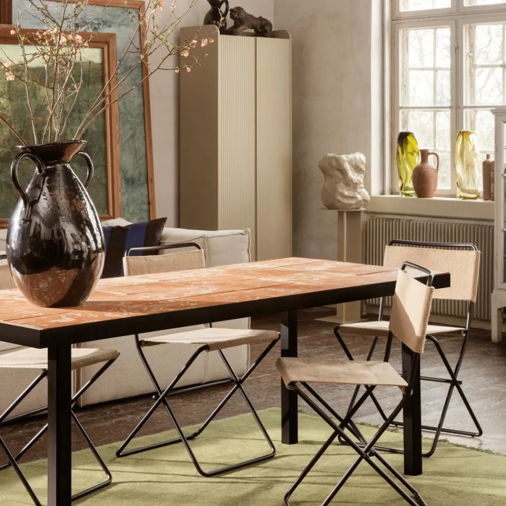 Der Sill Schrank wurde für die Marke Ferm Living entworfen. Der Name sagt schon viel über das Design des Schranks aus: Das französische Wort sillion bedeutet auf Deutsch nämlich Rille. Und genau so ist die Oberfläche des eleganten Möbelstücks gestaltet: Feine horizontale Linien an den Fronten werden zum Markenzeichen.